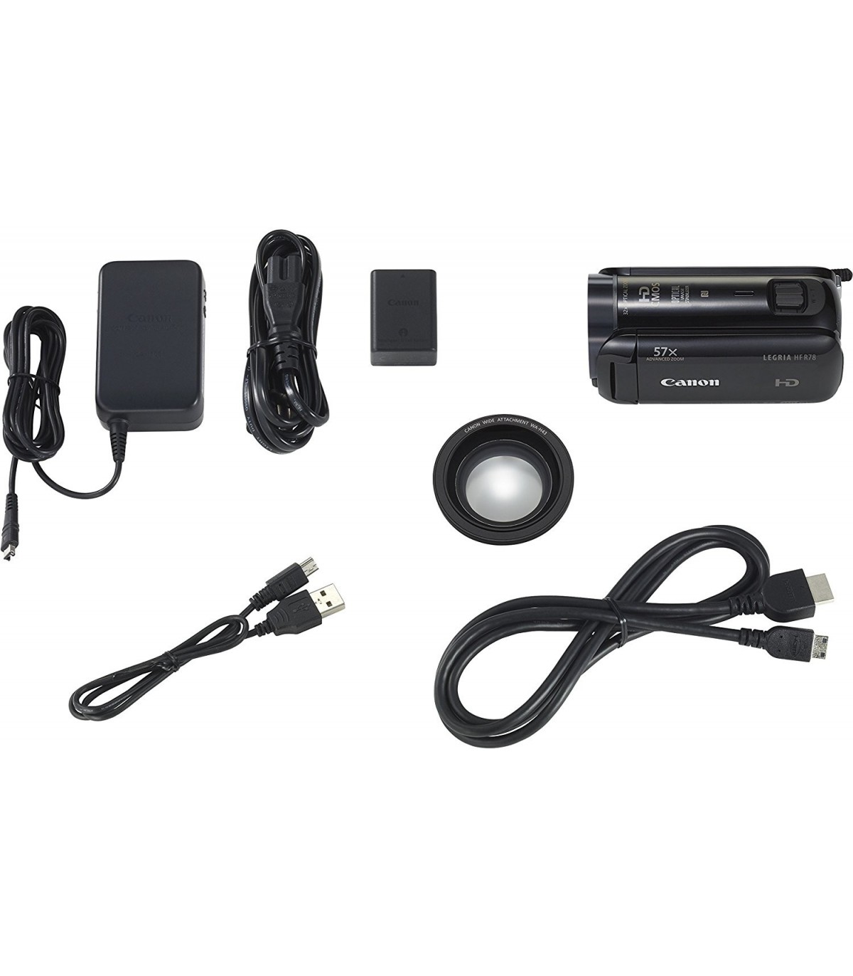 برای راحتتر شدن کار انتقال فایلها به کامپیوتر، HF R78دارای کابل USB 2.0 داخلی است و نیازی به استفاده از کابل جداگانه ندارد. این کابل بهراحتی در داخل دستگیرهی دوربین جاسازی شده است تا مزاحمتی را در حین کار ایجاد نکند. شارژ دوربین نیز از طریق USB انجام میپذیرد و قادر است به ازای هر دو دقیقه شارژ یک دقیقه فیلمبرداری کند. همچنین دوربین HF R78 به وایفای و اتصال NFC مجهز است و میتوان به صورت بیسیم فایلهای ذخیره شده را به موبایل و تبلتهای هوشمند منتقل کرد با کنترل دوربین را از طریق اپلیکیشن اندروید و iOS به دست گرفت.