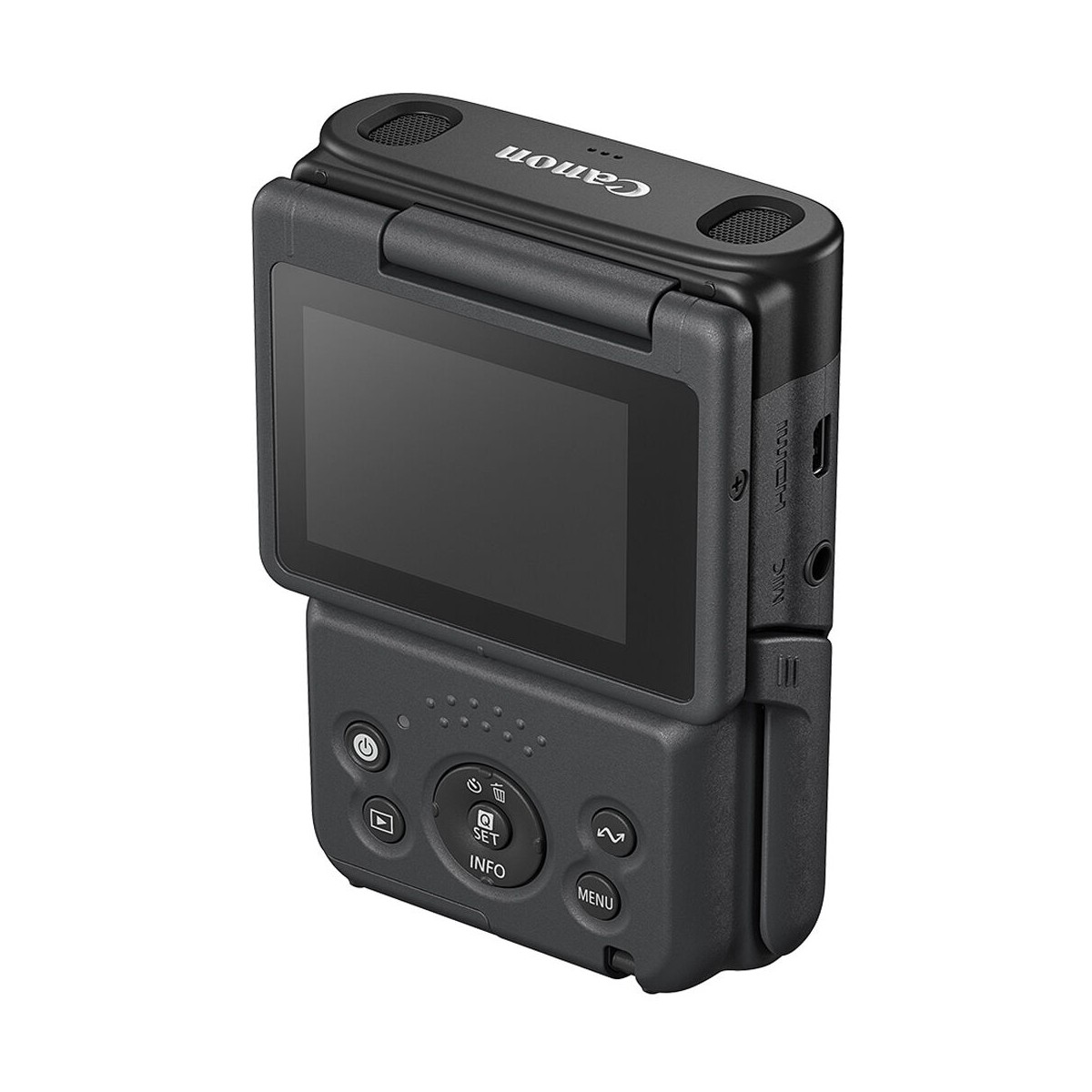 دوربین PowerShot V10 کانن یک استودیوی ولاگینگ کامل اما کوچک است که قابلیتهایی اعم از لنز با فاصله کانونی ۱۹ میلیمتری، یک پایه داخلی با قرارگیری ۳۰ درجه و قابلیت ضبط صدا بهصورت استریو را به همراه دارد. این دوربین قابلیت عکاسی نیز به همراه دارد و ازآنجاکه در آن از سنسور ۱ اینچی CMOS که در دوربینهای PowerShot سری G استفاده شده، بکار رفته میتوان به همراه این دوربین با رزولوشن UHD 4K و سرعت ۲۹.۹۷ فریم بر ثانیه و Full HD با سرعت ۵۹.۹۴ فریم بر ثانیه فیلمبرداری کرد. از دیگر قابلیتهای این دوربین باید به وجود وای-فای داخلی، امکان استفاده از اپلیکیشن Canon Camera Connect و پخش زنده در پلتفرمهای مختلف با رزولوشن Full HD و سرعت ۳۰ فریم بر ثانیه اشاره کرد.