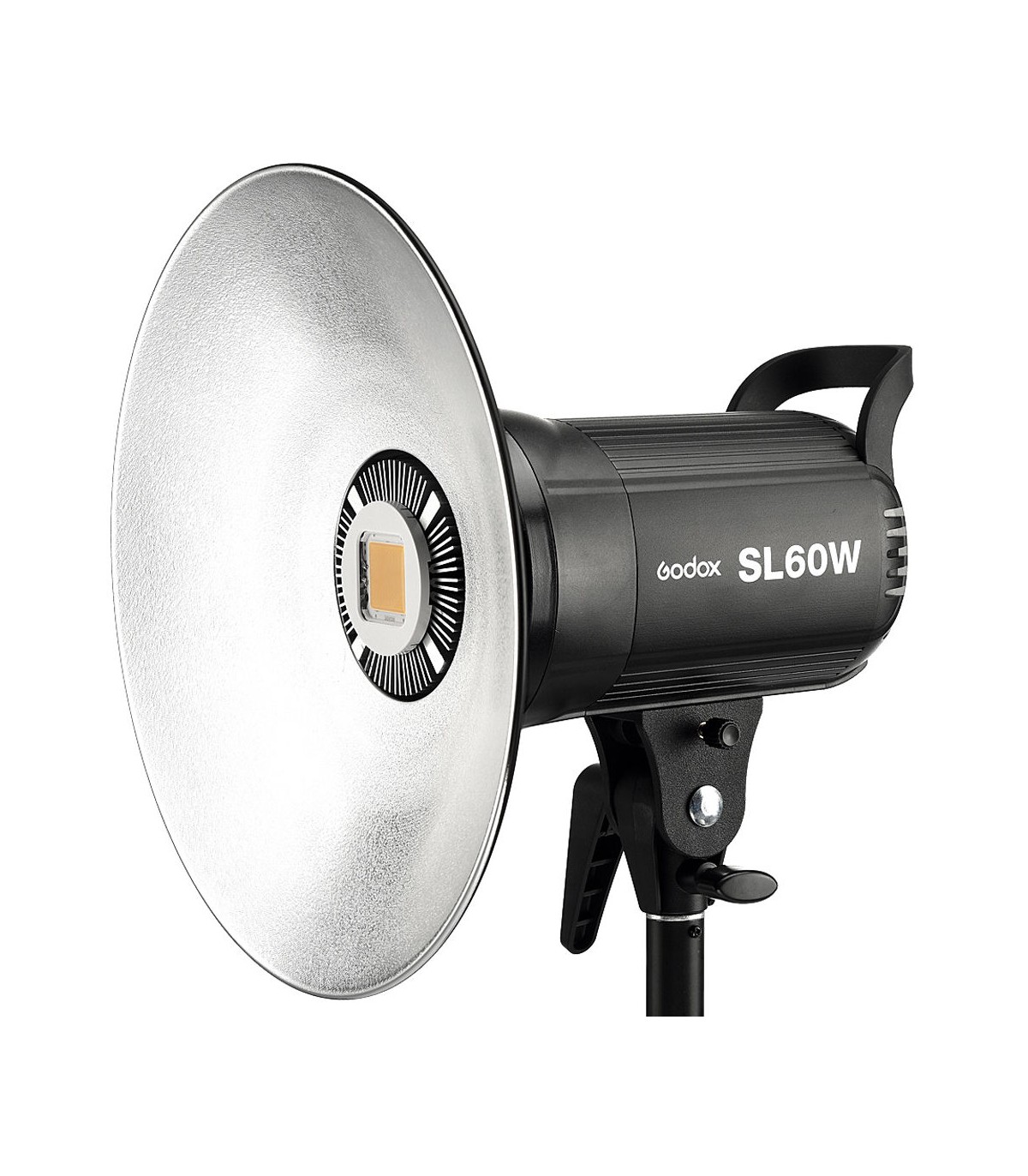 نور سینمایی Godox مدل SL-60 نیز محصول همین کمپانی بوده و ابزاری حرفهای برای استفاده در فیلمبرداری میباشد. همانطور که از نام آن پیداست، محصول فوق دارای توان ۶۰ وات بوده و دمای رنگی آن برابر ۵۶۰۰ درجه کلوین است که آن را مناسب برای تنظیم نور فیلمبرداری در روز ساخته است. گودوکس برای دقت بیشتر بر روی این محصول از یک چیپ COB LED استفاده کرده تا روشنایی و دقت رنگی آن در بیشترین میزان ممکن باشد. در بخش پشتی دستگاه یک پنل LCD تعبیه شده که میتوانید از آن برای مشاهده وضعیت و تنظیمات دستگاه استفاده کنید. در کنار این نمایشگر پیچ تنظیم قدرت خروجی قرار دارد که با استفاده از آن میتوانید قدرت خروجی این نور LED را از ۱۰ تا ۱۰۰ درصد حداکثر توان تنظیم کنید.