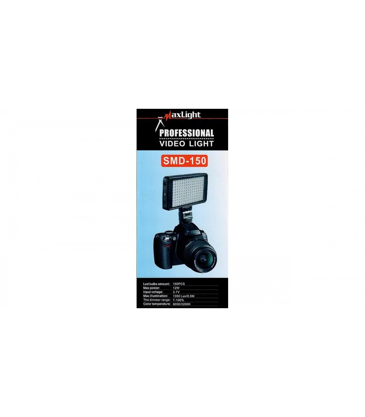 نور ال ای دی Max Light مدل SMD-150 یک منبع نور کارآمد و جمعوجور است که دارای توان ۱۲ وات میباشد. این نور پیوسته ابزاری کارآمد برای استفاده از فیلمبرداری و عکاسی است و از ۱۵۰ لامپ SMD برای روشنایی استفاده میکند. دمای رنگی نور این محصول قابلیت تنظیم در بازه ۳۲۰۰ تا ۶۰۰۰ درجه کلوین را داشته و میزان نور خروجی از این نور برابر با ۱۳۵۰ لوکس میباشد. همچنین توان خروجی آن را میتوان از ۷ تا ۱۰۰ درصد حداکثر توان تنظیم کرد.