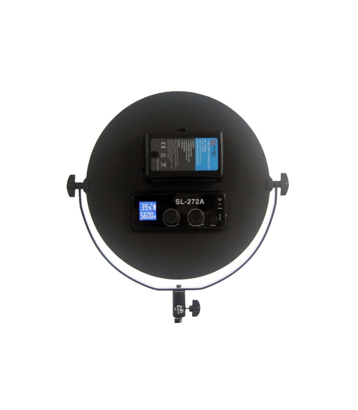نور سینمایی گرد LED Yidoblo مدل SL-272 با طراحی باریک و سبک و بدنه آلومینیومی، راهکاری مناسب برای ایجاد نور سافت عکاسی و فیلمبرداری است. این محصول با ۱۳۶ دیود LED، نور طبیعی با دمای ۵۶۰۰ کلوین و نور گرم با دمای ۳۲۰۰ کلوین ایجاد میکند که قابلیت تنظیم شدت آن نیز از ۰ تا ۱۰۰ درصد وجود دارد. حداکثر شدت نور این محصول به ۱۳۵۰ لوکس در فاصله یک متری میرسد و شاخص CRI آن بیش از ۹۵ است. تنظیمات این محصول به لطف یک نمایشگر LCD بسیار ساده است و به راحتی میتوان وضعیت دستگاه را به کمک آن مشاهده کرد.
