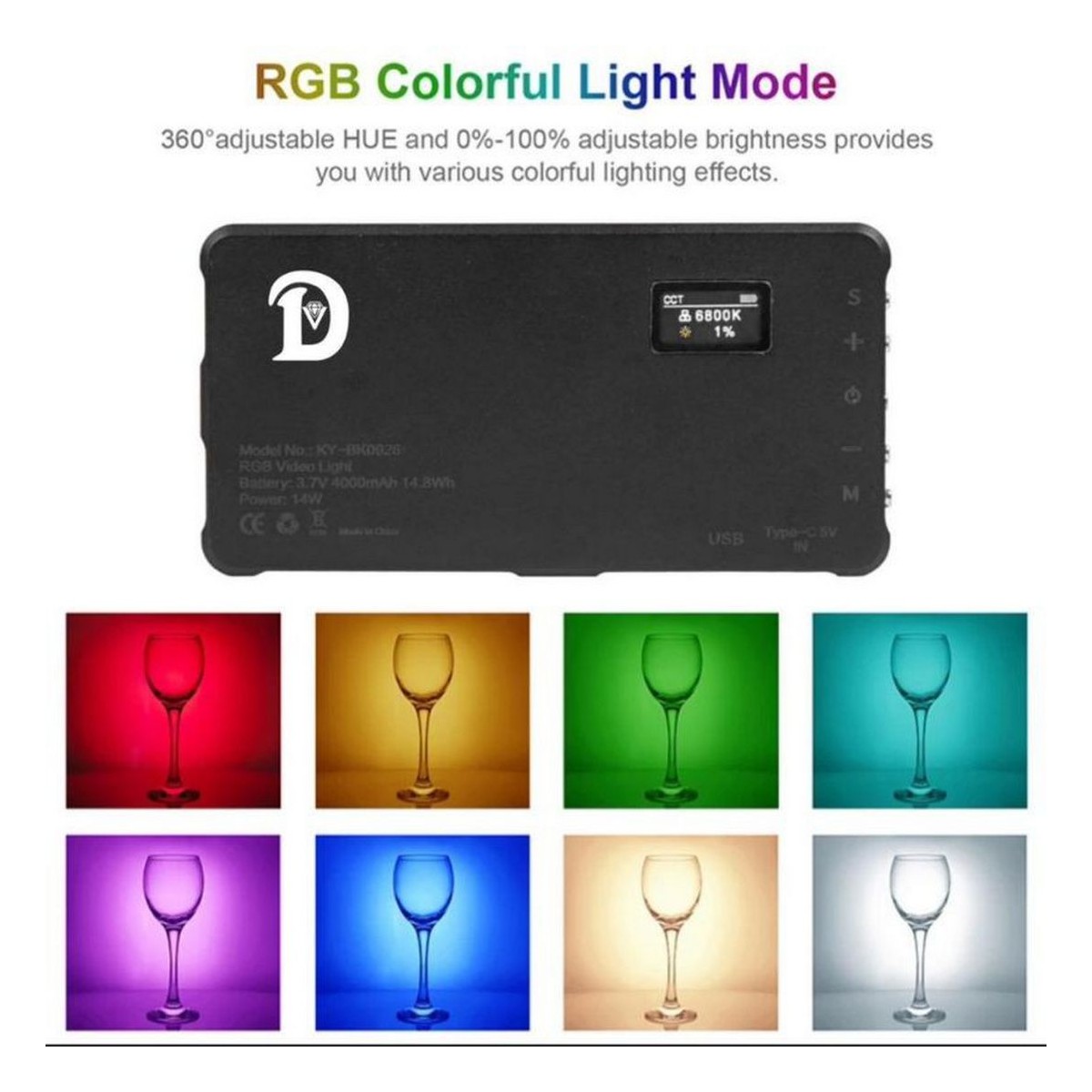 چراغ Diamond KY-BK0926 از نوع RGB است؛ به این معنا که قابلیت نمایش میلیونها رنگ متنوع را دارد. کاربر میتواند از میان رنگهای مختلف، ترکیبهای نورپردازی جذاب و متفاوتی ایجاد کند. این قابلیت برای خلق حالوهوای خاص در ویدیو، ساخت صحنههای دراماتیک یا ایجاد حس و انرژی خاص در فضای اتاق یا استودیو کاربردی است.