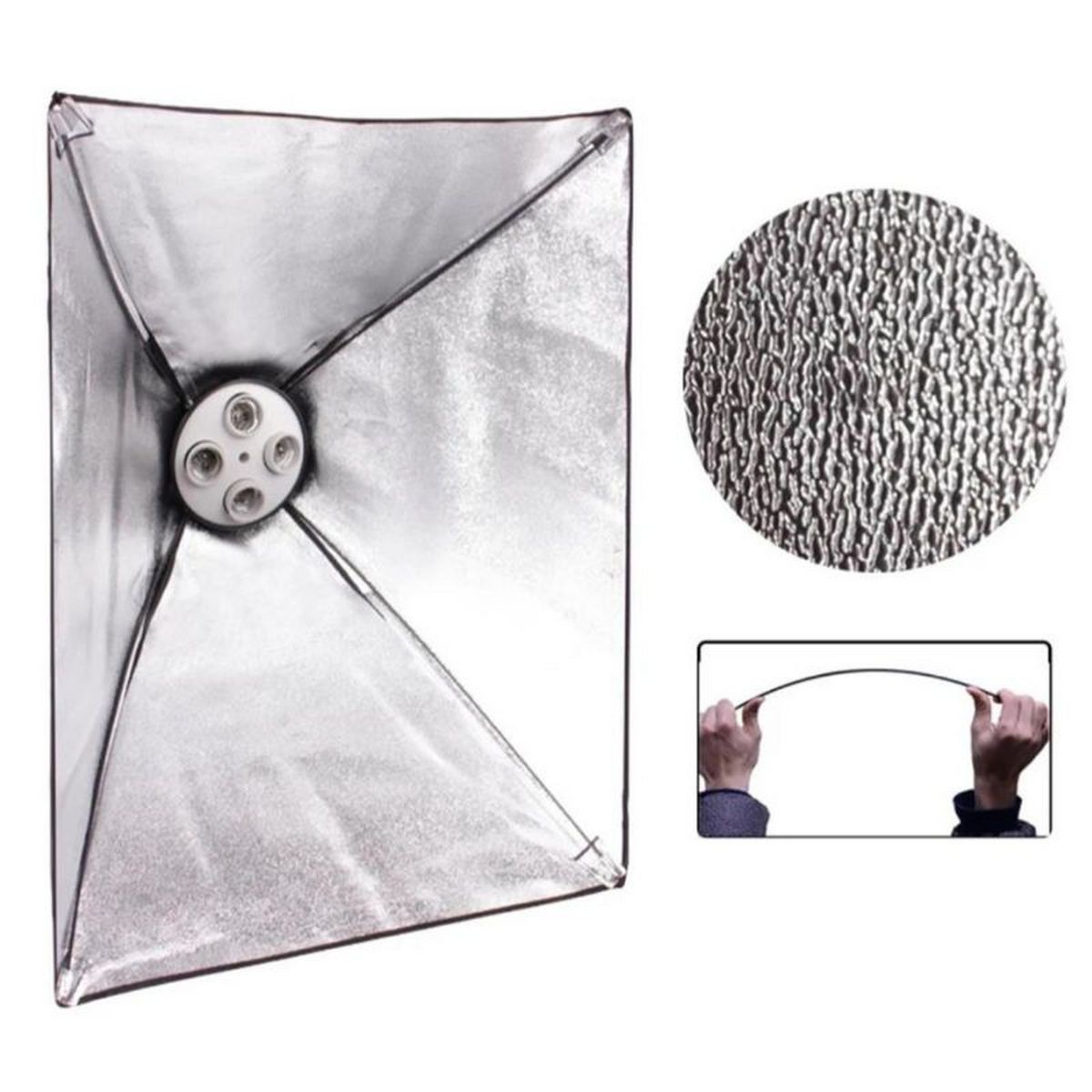 • ۲ عدد سافتباکس ۵۰×۷۰ سانتیمتر برای نرمکردن نور و حذف سایههای تند