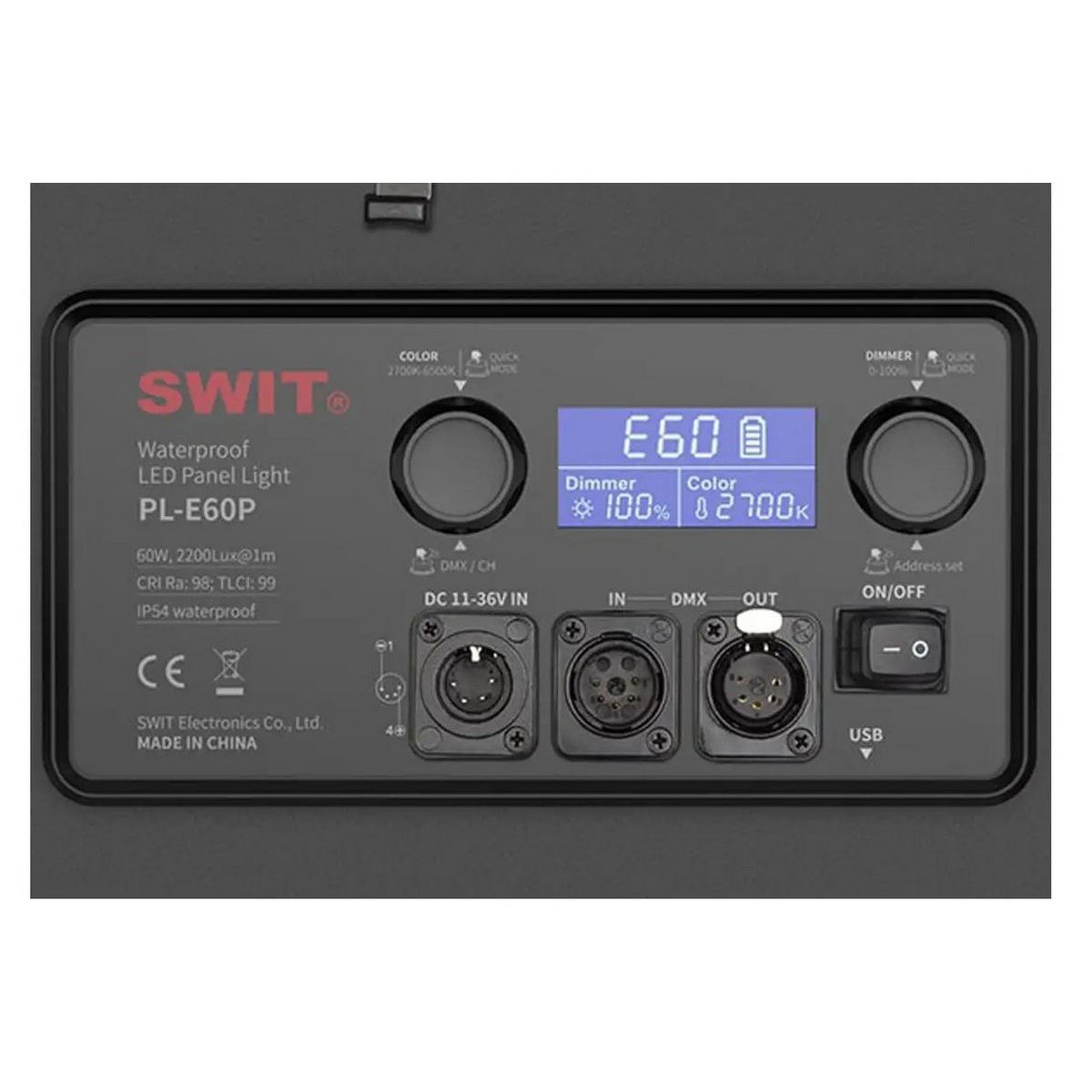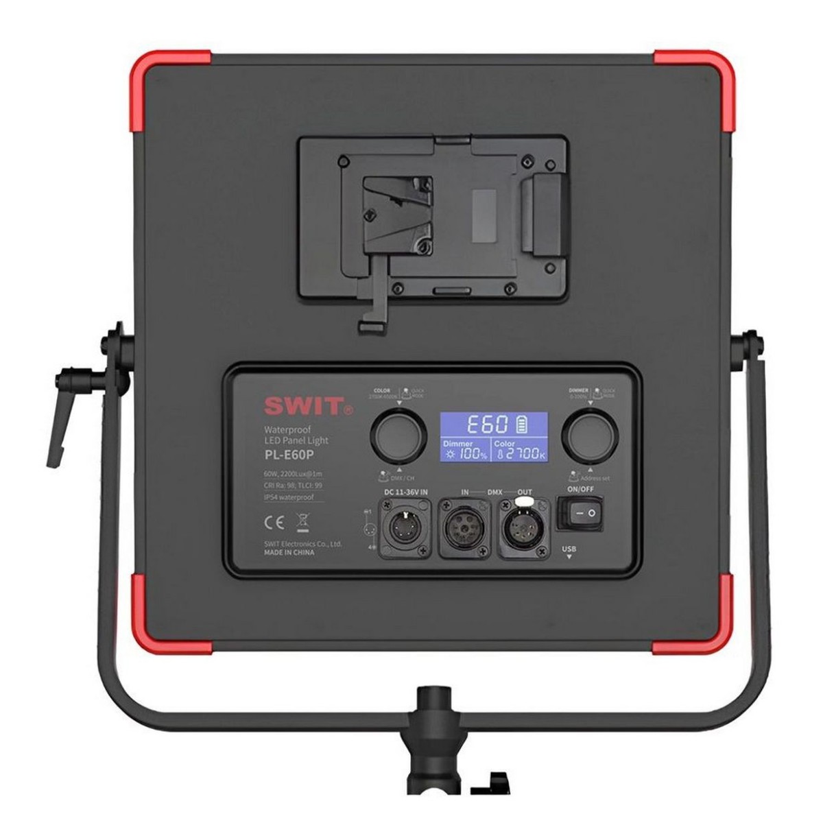 در بخش پشتی PL-E60P، یک نمایشگر LCD تعبیه شده که تمامی اطلاعات ضروری را در اختیار کاربر قرار میدهد: شدت نور، دمای رنگ، کانال DMX و حتی وضعیت باتری. این نمایشگر خوانایی بالایی دارد و در شرایط کمنور یا پرنور به راحتی قابل مشاهده است.