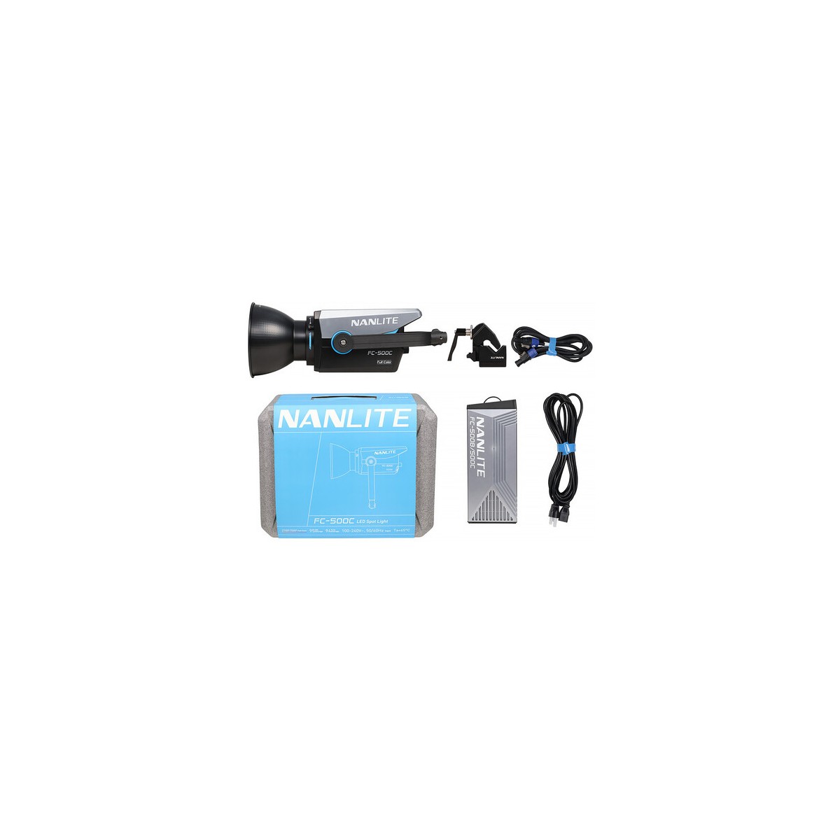 | محتویات جعبه | چراغ Nanlite FC500C با رفلکتور، منبع تغذیه، کابل برق و کیف حمل |
