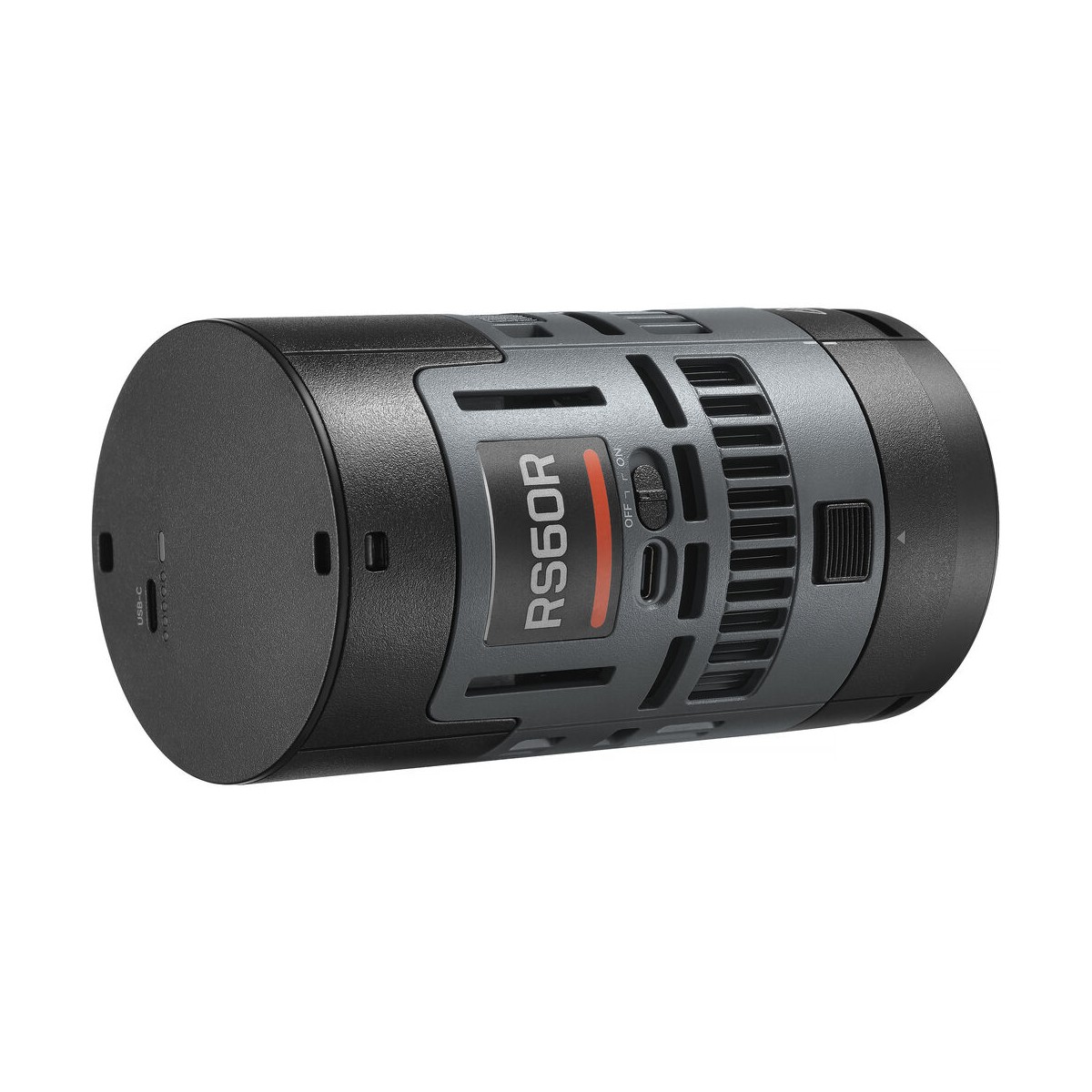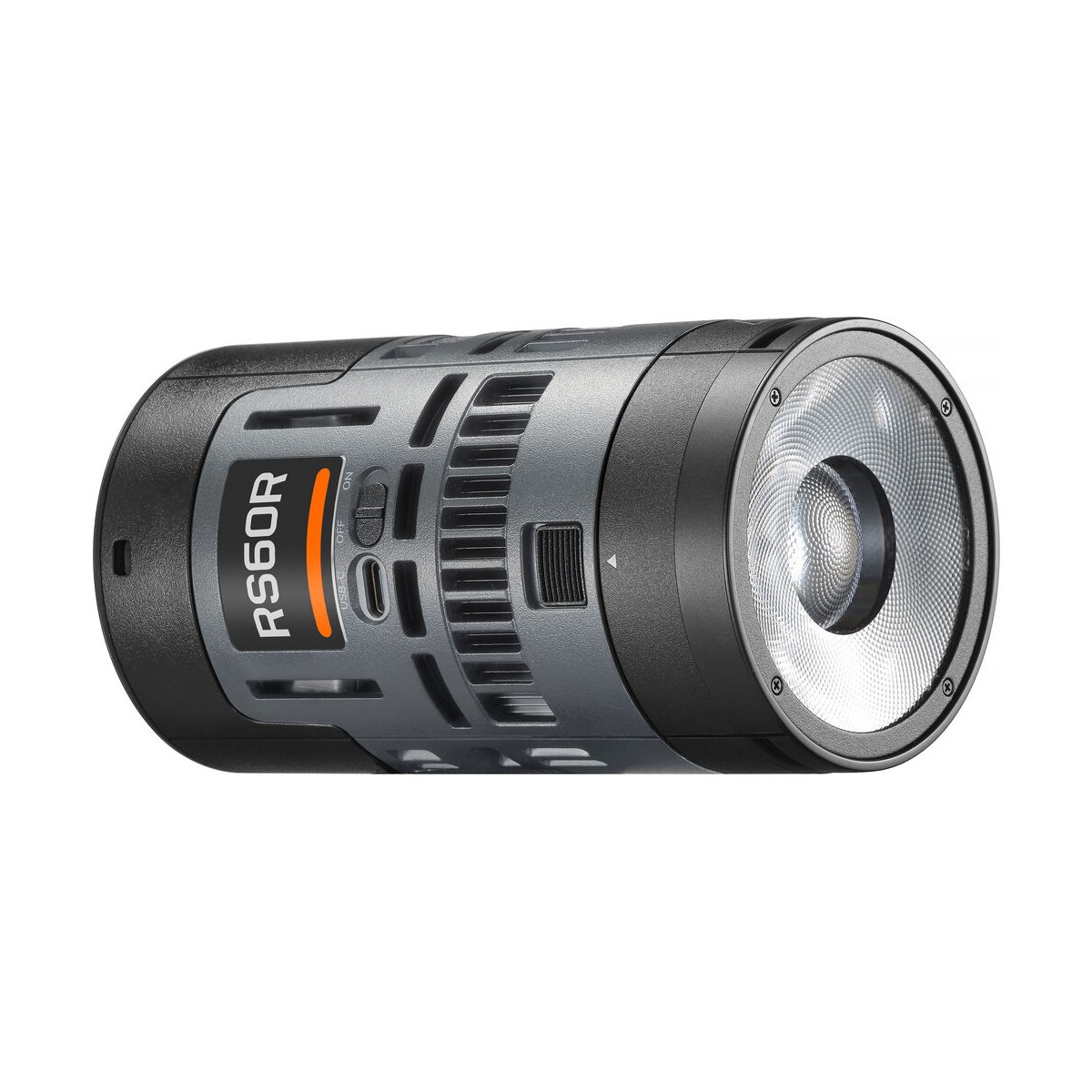 بدنه RS60R از آلیاژ آلومینیوم مقاوم ساخته شده و درعینحال وزن آن تنها حدود ۳۱۱ گرم است. این ویژگی باعث میشود نصب و جابهجایی آن برای کارهای سیار یا فضاهای کوچک بسیار آسان باشد. طراحی استوانهای دستگاه، یادآور نسل جدید چراغهای پرتابل گودوکس است که با تمرکز بر کارایی و تهویهٔ مناسب ساخته شدهاند. قسمت جلویی چراغ از یک لنز شفاف برای تمرکز نور استفاده میکند و در بخش پشتی، نمایشگر دیجیتال و دکمههای تنظیم وجود دارد که کنترل سریع را ممکن میسازد.