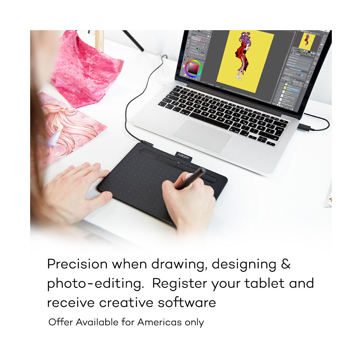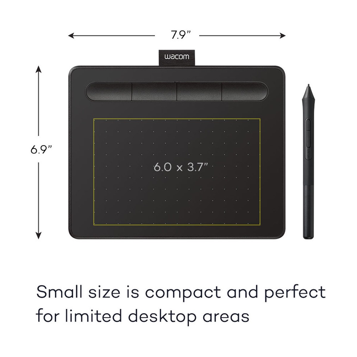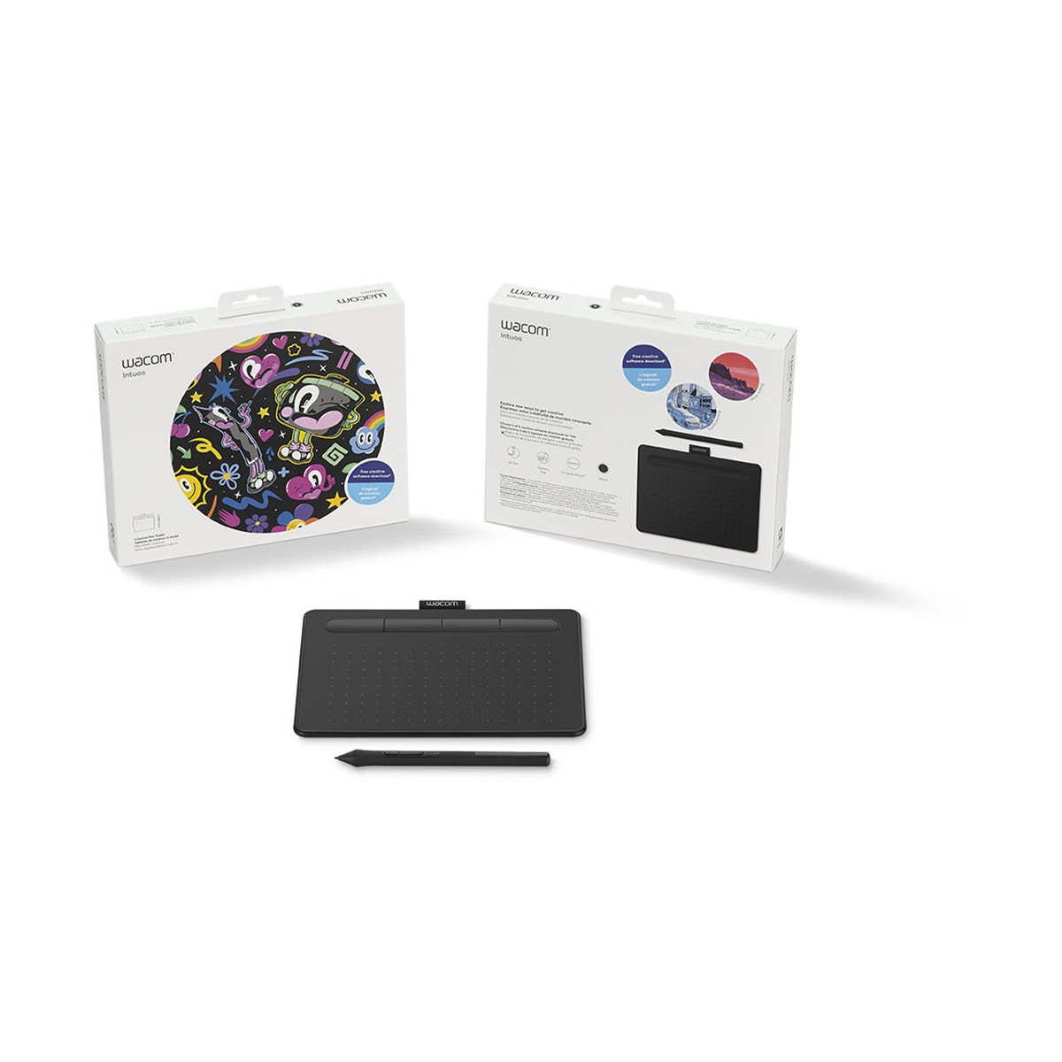تبلت گرافیکی Intuos Creative Pen یک ابزار ایدهآل برای ثبت ایدهها و آثار هنری بهصورت دیجیتال است. این تبلت دارای فضای فعال طراحی به ابعاد ۶×۳.۷ اینچ است و هم برای راستدستها و هم برای چپدستها، قابل استفاده است. چهار کلید قابل برنامهدهی بر روی این تبلت قرار گرفته است که میتوانید آنها را بر روی پرکاربردترین دستورات مانند Copy، Paste و یا Undo تنظیم کنید. یک قلم استایلوس حساس به فشار با قابلیت شناسایی حد فشار در ۴۰۹۶ سطح مختلف نیز همراه این محصول عرضهشده است. با رجیستر کردن این تبلت میتوانید بهصورت رایگان اقدام به دانلود نرمافزارهای Corel Painter Essential نسخه ۹۰ روزه، Corel AfterShot Pro 3 نسخه ۹۰ روزه و Clip Studio Paint Pro با لایسنس ۲ ساله، کنید.