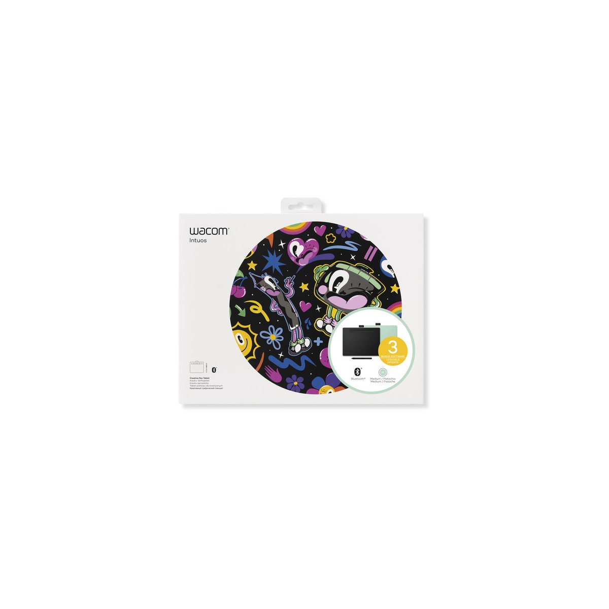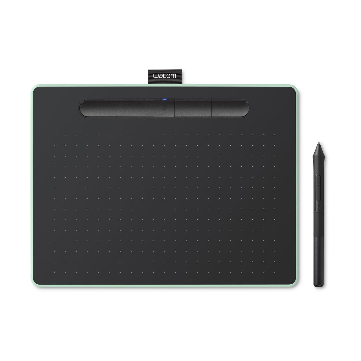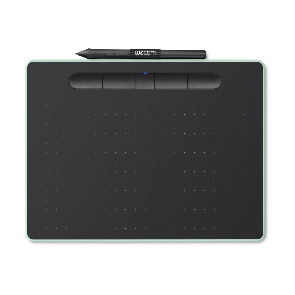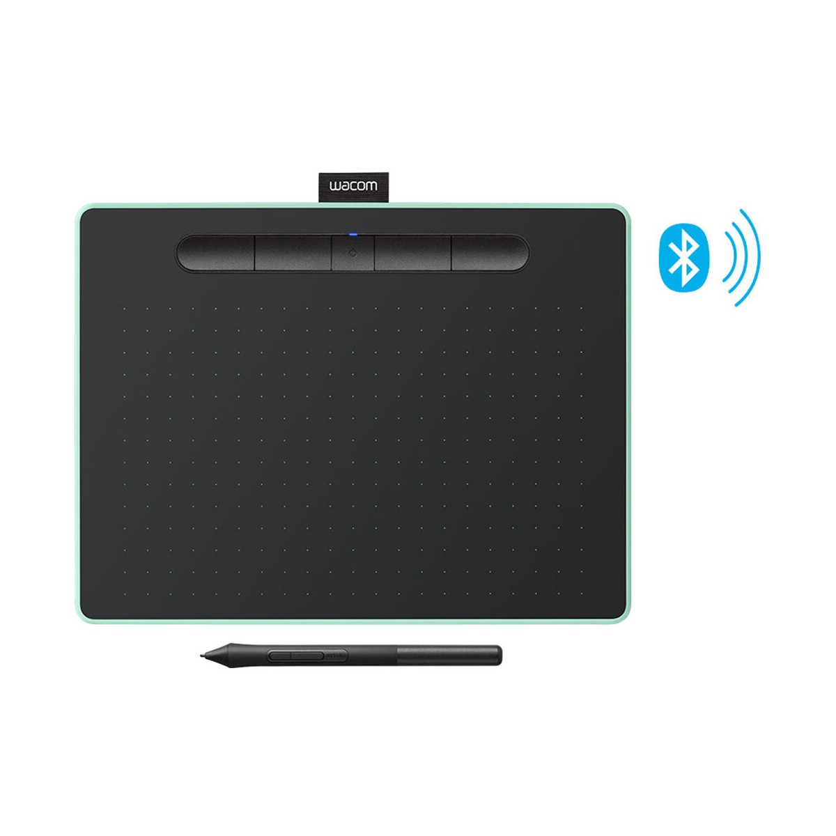 تبلت گرافیکی Intuos Bluetooth Creative Pen در اندازه مدیوم یک ابزار ایدهآل برای ثبت ایدهها و آثار هنری بهصورت دیجیتال است. این تبلت دارای فضای فعال طراحی به ابعاد ۸.۵×۵.۳ اینچ است و هم برای راستدستها و هم برای چپدستها، قابل استفاده است. چهار کلید قابل برنامهدهی بر روی این تبلت قرار گرفته است که میتوانید آنها را بر روی پرکاربردترین دستورات مانند Copy، Paste و یا Undo تنظیم کنید. یک قلم استایلوس حساس به فشار با قابلیت شناسایی حد فشار در ۴۰۹۶ سطح مختلف نیز همراه این محصول عرضهشده است. با رجیستر کردن این تبلت میتوانید بهصورت رایگان اقدام به دانلود نرمافزارهای Corel Painter Essential نسخه ۹۰ روزه، Corel AfterShot Pro 3 نسخه ۹۰ روزه و Clip Studio Paint Pro با لایسنس ۲ ساله، کنید.