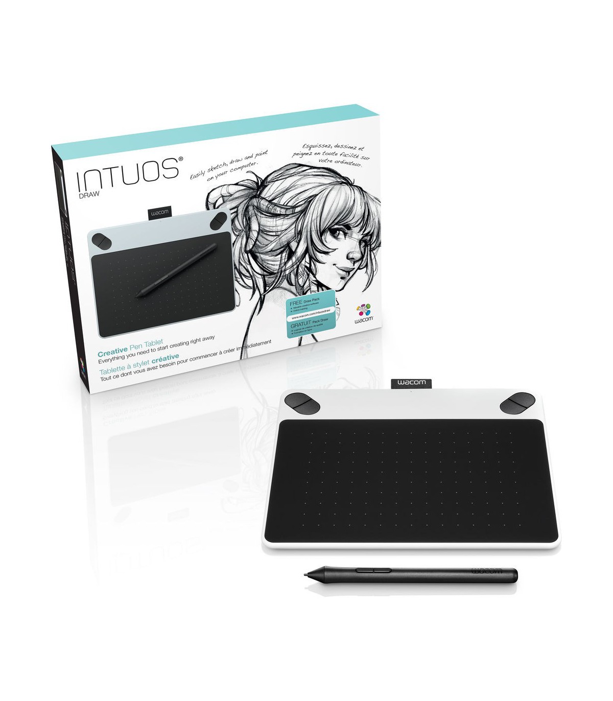 قلم و صفحه نوری Wacom Intuos Draw Pen Small Tablet یکی از محصولات بسیار پرطرفدار این شرکت است. این محصول دارای سطح لمسی با ابعاد ۹۴ × ۱۵۲ میلیمتر میباشد. این ابعاد برای کارهای نیمهحرفهای و حرفهای مناسب است و میتوانید با آن به انجام کارهای گرافیکی، نقاشی، تصویرسازی، درج متون دستنویس و گرفتن امضاء نامههاى الکترونیکی بپردازید.