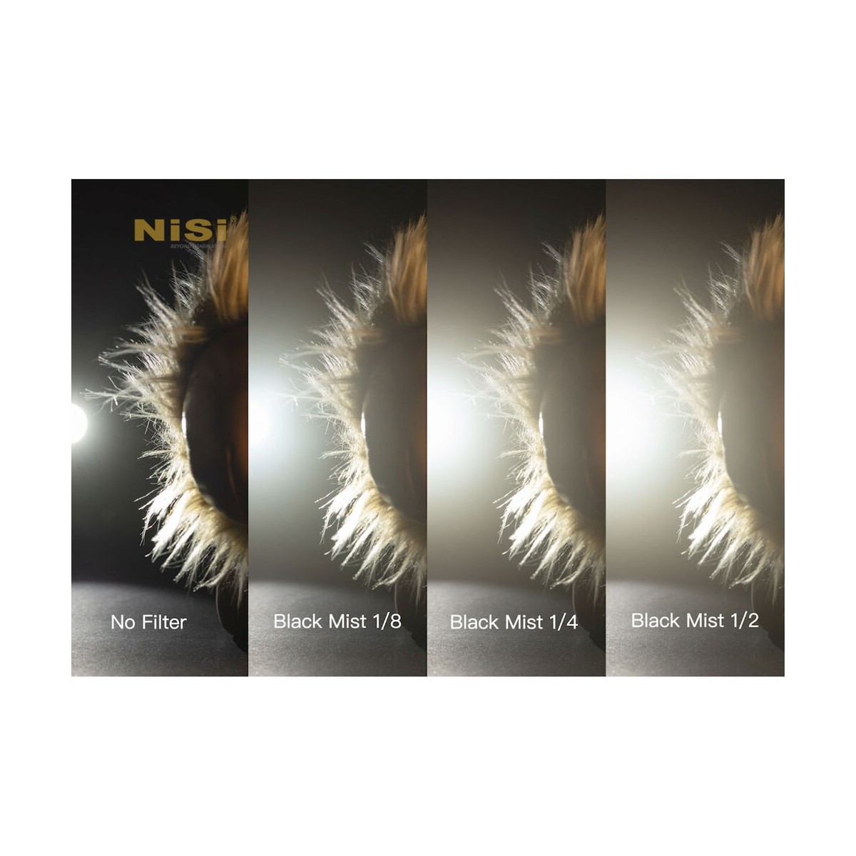 فیلتر Black Mist 1/8 نیسی یک فیلتر دیفیوزر کلاسیک است که برای لنزهای با دهانه فیلتر ۸۲ میلیمتری طراحی شده است. این فیلتر با کاهش هایلایتها موجب ایجاد تعادل رنگی در تصویر میشود و استفاده از آن هم در عکاسی و هم در فیلمبرداری کارایی دارد. این فیلتر مخصوصا در اوقاتی که کاربر بخواهد در مجاورت با منبع نور تصویربرداری کند، کارآمد است و حالتی شبیه به لنزهای باکیفیت قدیمی در تصاویر ایجاد میکند.