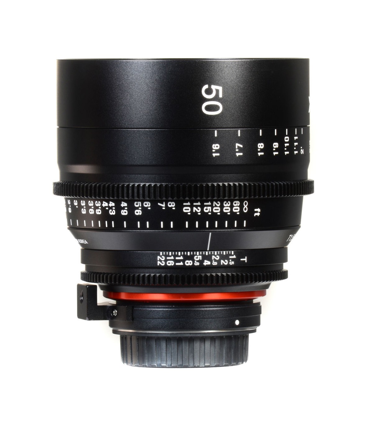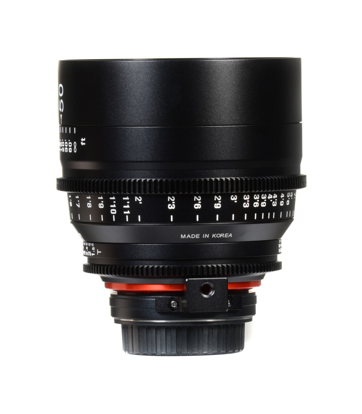 نشانگر های مقیاس فوکوس و iris در هر دو طرف این لنز به چشم می خورد. دیافراگم 11 تیغه لنز سینمایی Rokinon Xeen 50mm T1.5 for Sony E-mount هایلایت هایی طبیعی و بوکه های زیبایی به ارمغان می آورند. توجه به این نکته الزامیست که تنظیم فوکوس و iris این لنز به صورت دستی انجام می شود و فوکوس خودکار یا تنظیم iris خودکار ندارد. دهانه لنز 114 میلی متری این لنز نیز همانند بسیاری از محصولات مشابه سینمایی است که این مسئله تعویض آن را به هنگام استفاده از matte box یا ابزارهای فوکوس راحت تر می کند. حلقه فوکوس تا 200 درجه قابلیت چرخش دارد و وضعیت فوکوس را از نزدیک تا بی نهایت با دقت بسیار بالایی تغییر می دهد.