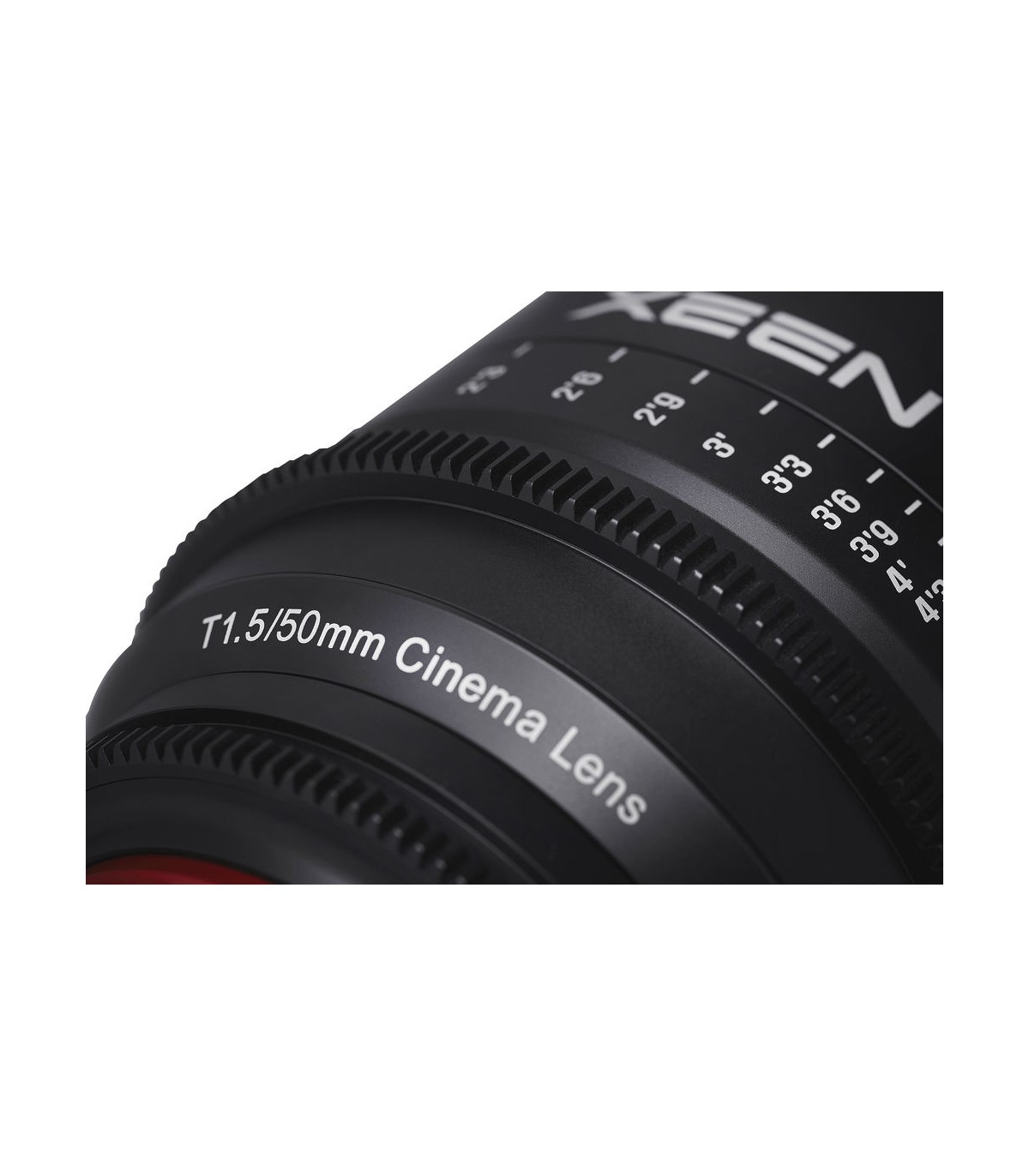 لنز سینمایی Rokinon Xeen 50mm T1.5 for Sony E-mount به طور ویژه برای استفاده در حوزه سینما طراحی و تولید شده است. این لنز به ساز و کار فوکوس داخلی مجهز شده تا طول لنز به هنگام انجام فرایند فوکوس ثابت بماند و تغییر نقطه فوکوس به طور یکنواخت انجام شود. برای عدسی های این لنز از پوشش چندگانه استفاده شده تا کنتراست مناسبی ایجاد شود و از بروز پدیده glare پیشگیری شود. در نتیجه رنگ ها دقیقا با استاندارد های کارخانه همخوانی خواهند داشت و در طی زمان افت نخواهند کرد. این لنز سینمایی با فاصله کانونی 50mm میدان دید عادی با حسگر های فول فریم ایجاد می کند؛ اگرچه در صورت استفاده با حسگر های کوچکتر، میدان دید نیز بسته تر خواهد بود.