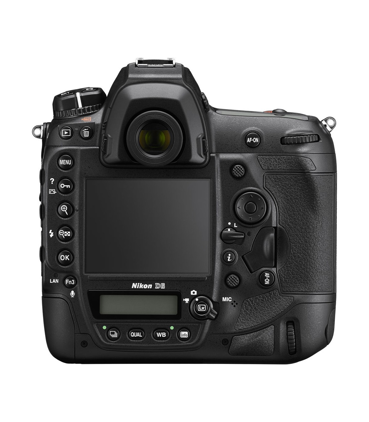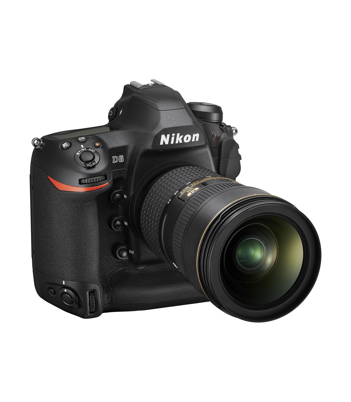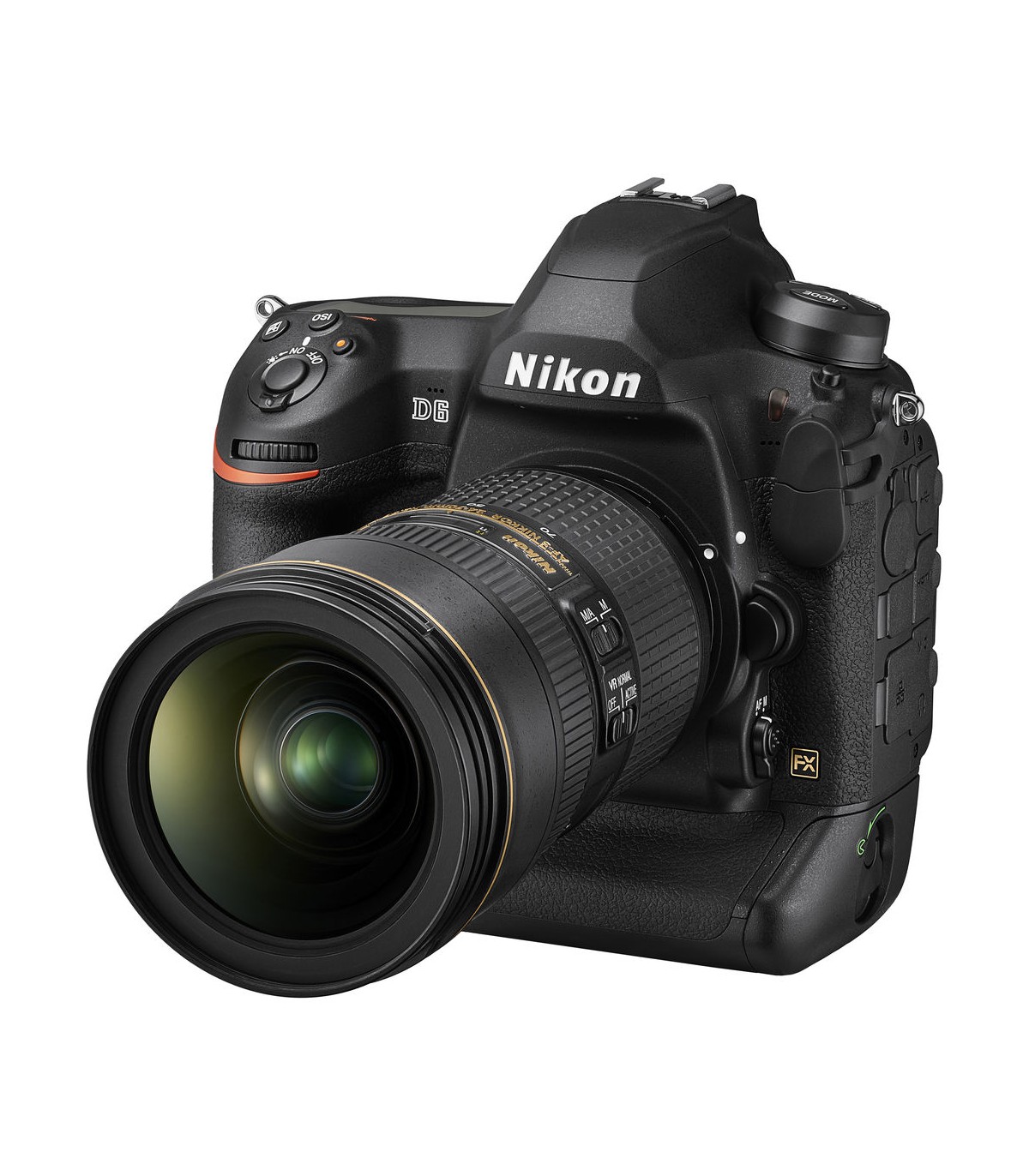 نیکون D6 پرچمدار دوربینهای DSLR نیکون و یکی از قدرتمندترین محصولات این کمپانی است. سرعت بالا، سیستم فوکوس خودکار پیشرفته، قابلاطمینان بودن و دقت بالا، از مهمترین ویژگیهای این دوربین میباشند. نیکون D6 از یک حسگر فولفریم با رزولوشن ۲۰.۸ مگاپیکسل بهره میبرد و در کنار آن از پردازشگر تصویر EXPEED 6 استفاده شده است. بدینصورت دوربین فوق قادر به عکاسی پیاپی با سرعت ۱۴ فریم بر ثانیه خواهد بود. حساسیت ایزو این دوربین در بازه ۱۰۰ تا ۱۰۲۴۰۰ قابلتغییر است. این میزان در حالت افزایشیافته به ۳۲۸۰۰۰۰ خواهد رسید. در بخش فیلمبرداری، D6 از رزولوشن 4K پشتیبانی کرده و در این حالت سرعت فیلمبرداری آن ۳۰ فریم بر ثانیه خواهد بود. سیستم فوکوس خودکار این دوربین که با نام Multi-CAM 37K شناخته میشود دارای ۱۰۵ نقطه فوکوس کراس تایپ است که دقت و سرعت پروسه فوکوس خودکار را بهبود داده و میزان پوشش دهی کادر آن ۱.۶ برابر بیشتر خواهد بود. این سیستم فوکوس خودکار همچنین قابلیت گروهبندی در ۱۷ حالت مختلف را دارد. این قابلیت کاربر را قادر میسازد تا سیستم فوکوس را مناسب با نیازهای خود تنظیم کرده تا در سناریوهای شلوغ یا تصویربرداری از سوژههای متحرک، دقت و سرعت عمل مناسبی در اختیار کاربر قرار گیرد.