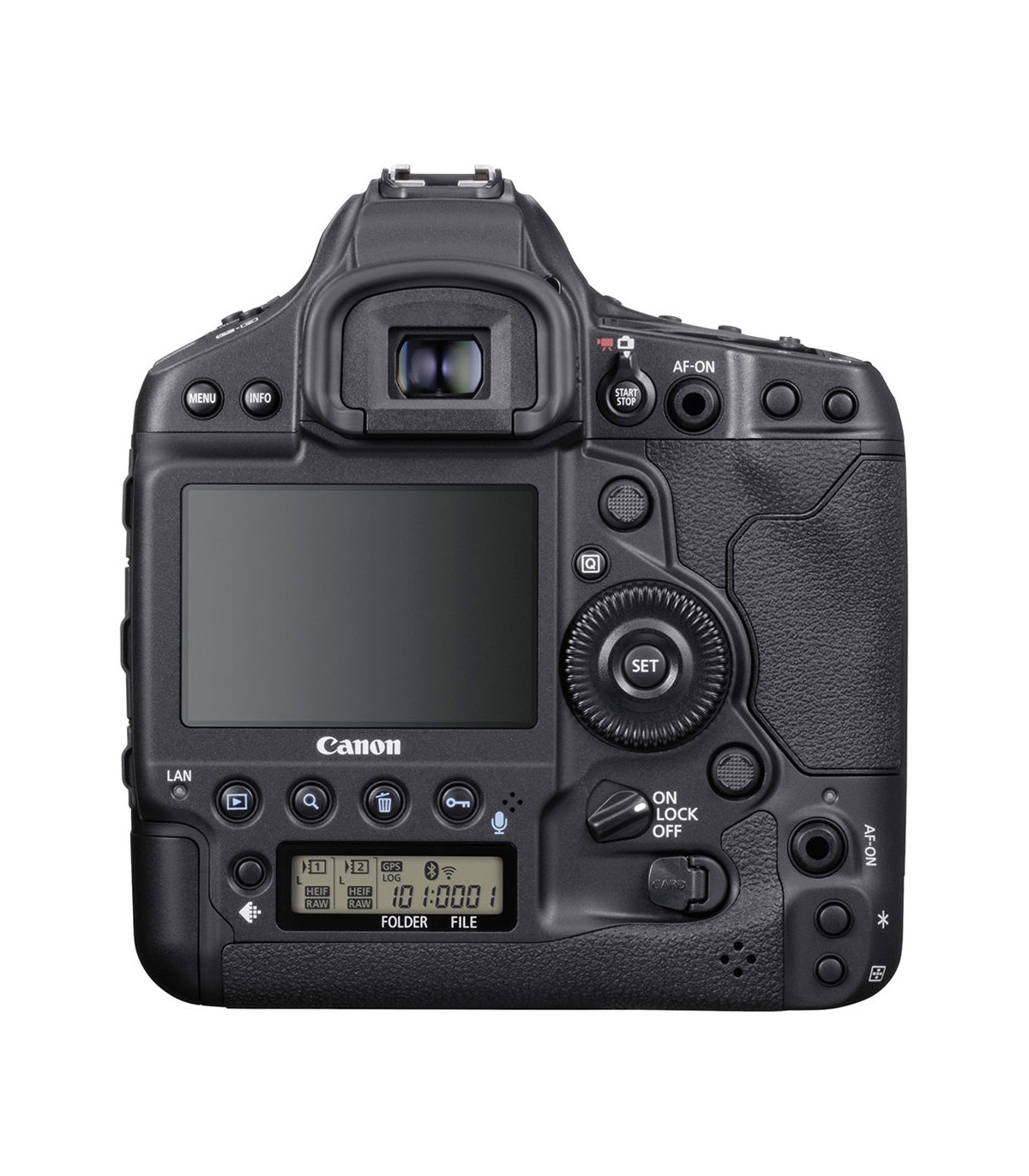 ساختار بدنه این دوربین همانطور که انتظار میرود بسیار مستحکم و یکپارچه است. شاسی آن از منیزیوم ساخته شده تا در عین استحکام بالا، دارای وزن کمی نیز باشد. علاوه براین، بدنه دوربین در برابر شرایط محیطی مقاوم است. بنابراین نگرانیای از بابت نفوذ آب و یا گردوغبار به داخل آن نخواهید داشت. در بخش پشتی دوربین نمایشگر ۳.۲ اینچی لمسی آن تعبیه شده که از یک پنل LCD با رزولوشن ۲.۱ میلیون نقطه برخوردار است. برای ذخیرهسازی،ِ کانن 1Dx از دو درگاه CFexpress Type B برخوردار است تا جواب گوی سرعت بالای این دوربین و حجم بالای اطلاعات دریافتی آن باشند. از دیگر قابلیتهای دوربین میتوان به موارد زیر اشاره نمود: