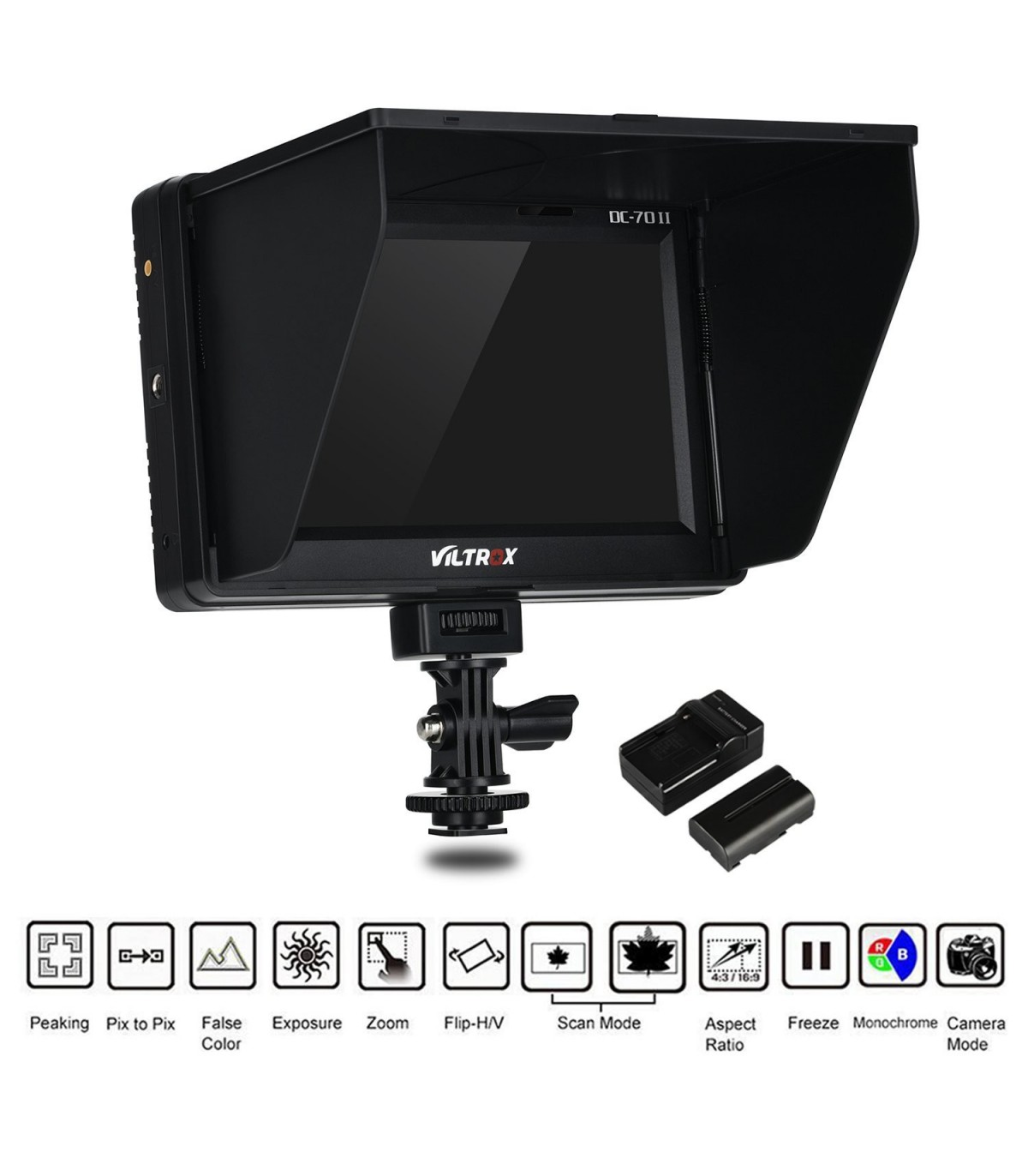 DC-70 II 4K یکی از همین نوع مانیتورها و محصولی از ویلتروکس است که به لطف برخورداری از پورتهای ورودی مختلف با طیف وسیعی از دوربینهای مختلف از دوربینهای فیلمبرداری مدولار گرفته تا دوربینهای DSLR سازگار است. این مانیتور ۷ اینچی رزولوشنی برابر با 1024x600 پیکسل دارد و برای فیلمبرداریتا رزولوشن 4Kمناسب است. همچنین با توجه به امکان بزرگنمایی پیکسل به پیکسل در این مانیتور میتوان با دقت بالایی بر روی سوژه فوکوس کرد. این قابلیت در عکاسی ماکرو جهت رسیدن به فوکوس دقیق بسیار کارآمد است.