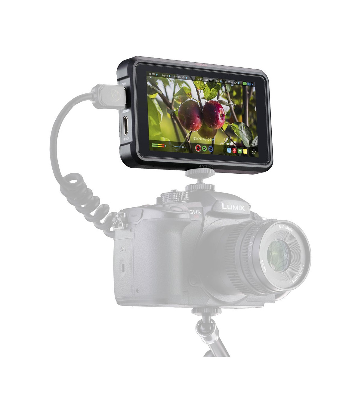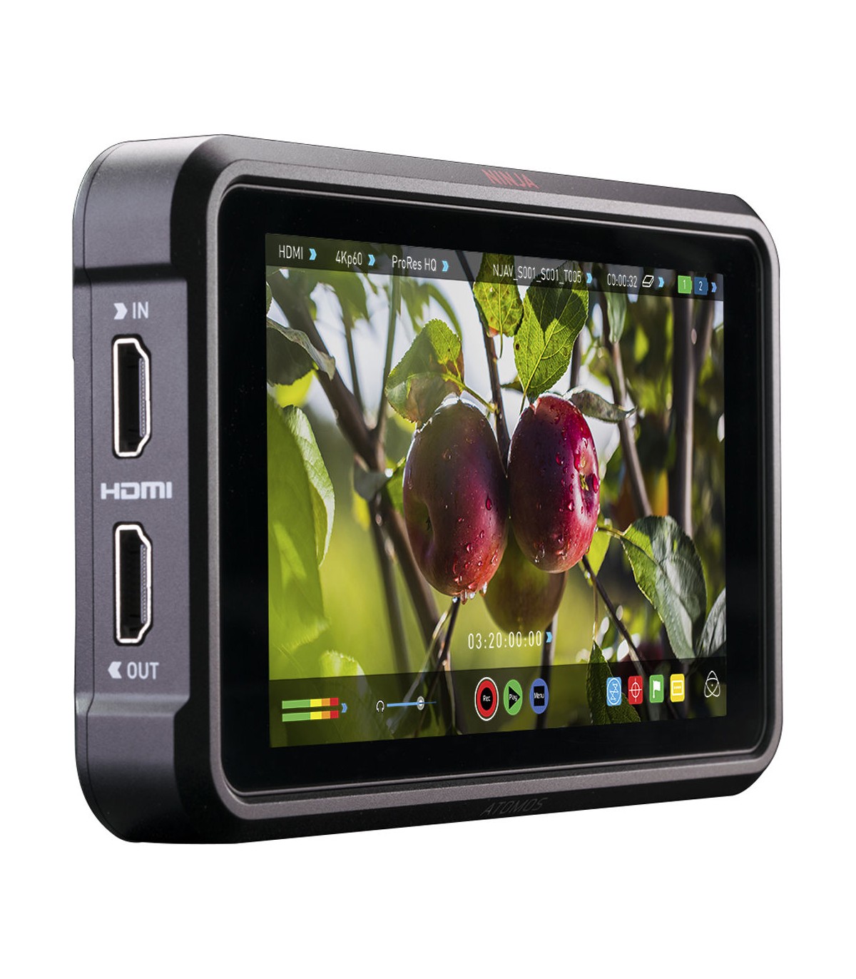 مانیتور Atomos Ninja V 4K HDMI یک نمایشگر رو دوربینی 5 اینچی با قابلیت ضبط و پخش با کیفیت DCI 4K و ذخیره سازی بر روی درایوهای SSD 2.5 اینچی است. این نمایشگر/رکوردر قابلیت ضبط با فرمت Apple ProRes Raw تا کیفیت DCI 4K60 است. به علاوه پنل این نمایشگر از نوع 10-Bit است و با بیشینه روشنایی 1000 cd/m2 و فناوری AtomHDR، تجربه ای دقیق از مانیتورینگ را به ارمغان می آورد. لازم به ذکر است که این مانیتور از فرمت های رایج log مانند Sony، ARRI، Canon، JVC، Panasonic، Nikon، RED و Z CAM پشتیبانی می کند.