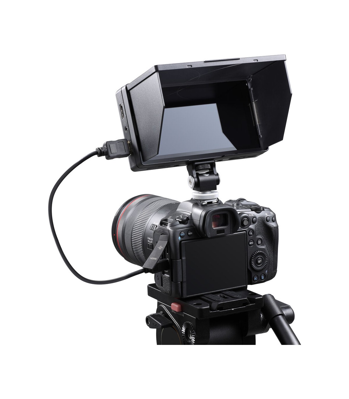 مانیتور لمسی رو دوربینی godox 5.5” 4K HDMI GM55 قابلیت Import 25 عدد LUT سه بعدی را به کمک شیار کارت حافظه SD دارد. کارایی های متعدد نرم افزاری این دوربین شامل false color یا vectorscope به کمک صفحه لمسی به آسانی قابل تنظیم است. به این ترتیب کنترل نور، فوکوس و فاکتورهای دیگر با دقت بالاتری ممکن است. سه عدد حفره مانت ¼”-20 در قسمت بالا، پایین و راست مانیتور تعبیه شده تا مانت کردن آن به صورت افقی و عمودی ممکن باشد. یک آداپتور هات شو نیز قابلیت مانت مانیتور لمسی رو دوربینی godox 5.5” 4K HDMI GM55 را بر روی دوربین فراهم می کند. یک هود باریک و تاشو نیز با اتصال به بالای مانیتور، از تابش نور مزاحم آفتاب بر روی صفحه مانیتور جلوگیری می کند.
