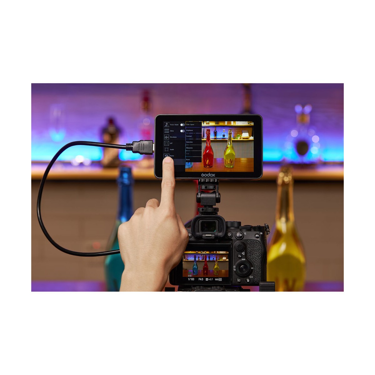 نمایشگر GM6S گودوکس یک مانیتور سبک و جمعوجور و با حداکثر روشنایی ۱۲۰۰ نیتی است. ورودی و خروجی HDMI این نمایشگر از ویدیوهای DCI و UHD 4K پشتیبانی میکنند. امکان کنترل دوربین از روی نمایشگر نیز در اختیار کاربر است و یک کابل نیز به این منظور در بستهبندی محصول قرار گرفته است. یک پورت ۳.۵ میلیمتری برای اتصال هدفون و مانیتورینگ صدا در هنگام کار نیز بر روی نمایشگر وجود دارد. امکان استفاده تا ۲۵ لوت 3D که از طریق کارت حافظه SD میتوان آنها را بارگذاری کرد هم از دیگر قابلیتهای این نمایشگر است.