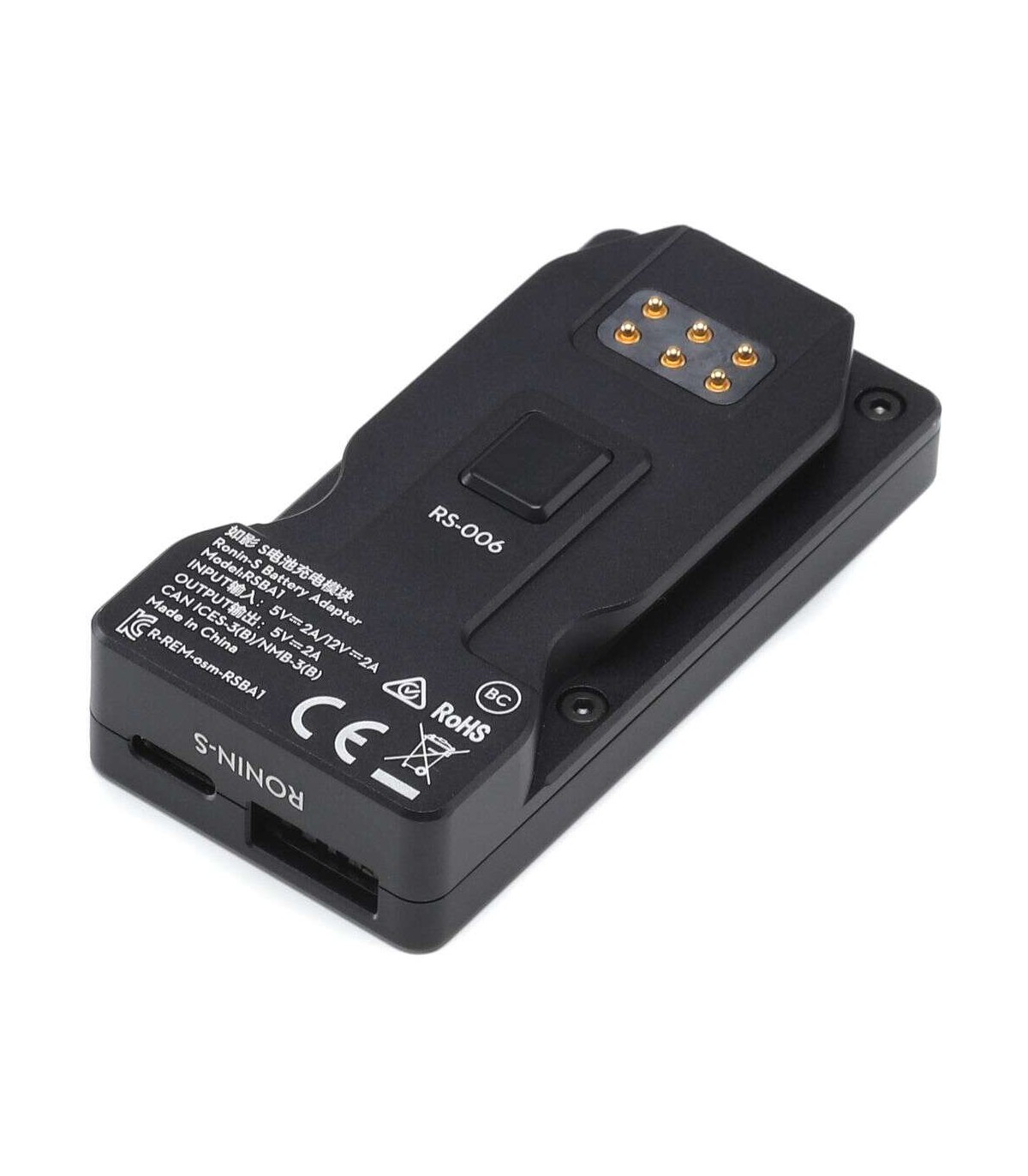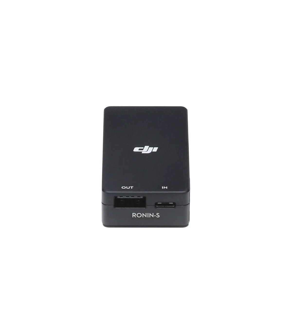 آداپتور باتری گیمبال DJI Ronin S امکان شارژ گریپ Ronin-S را با اتصال مستقیم آن به برق شهری ممکن می کند. با استفاده از این آداپتور دیگر نیاز نیست گریپ به گیمبال متصل باشد. برای شارژ کردن گریپ باید گیمبال از گریپ جدا شده و از قسمت بالا به آداپتور متصل شود؛ سپس یک کابل USB به درگاه Type-C آداپتور متصل شده و از طرف دیگر به خود شارژر وصل شود. درگاه USB Type-C با شارژر های 5V/2A موبایل سازگار است و برای سرعت بیشتر شارژ نیز می توان از شارژر 12V/2A، مانند نمونه ای که برای خود Ronin-S است، استفاده کرد.