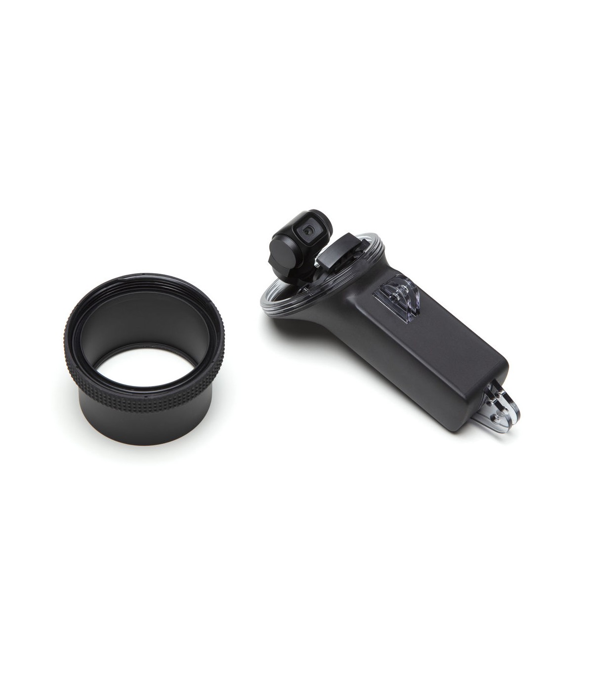 کیس ضد آب DJI Osmo Pocket امکان استفاده از گیمبال اسمو پاکت را تا عمق ۶۰ متری آب فراهم می‌کند و با طراحی ویژه‌ای که دارد، در دست گرفتن گیمبال نیز در زیر آب راحت است. این کیس ضدآب دو عدد مانت مخصوص برای اتصال تجهیزات جانبی متعدد یا مانت‌های مناسب دارد. سه عدد بخارگیر نیز در داخل این کیس به کار رفته تا از بخار کردن کیس در زیر آب و افت کیفیت تصاویر جلوگیری شود. پس از تنظیم گیمبال و قرار دادن آن درون کیس، یک کاور پیچی از قسمت بالا بر روی آن بسته و محکم می‌شود. لازم به ذکر است که تنظیم کردن گیمبال در داخل کیس ممکن نیست و برای این کار حتما باید از کیس خارج شود.