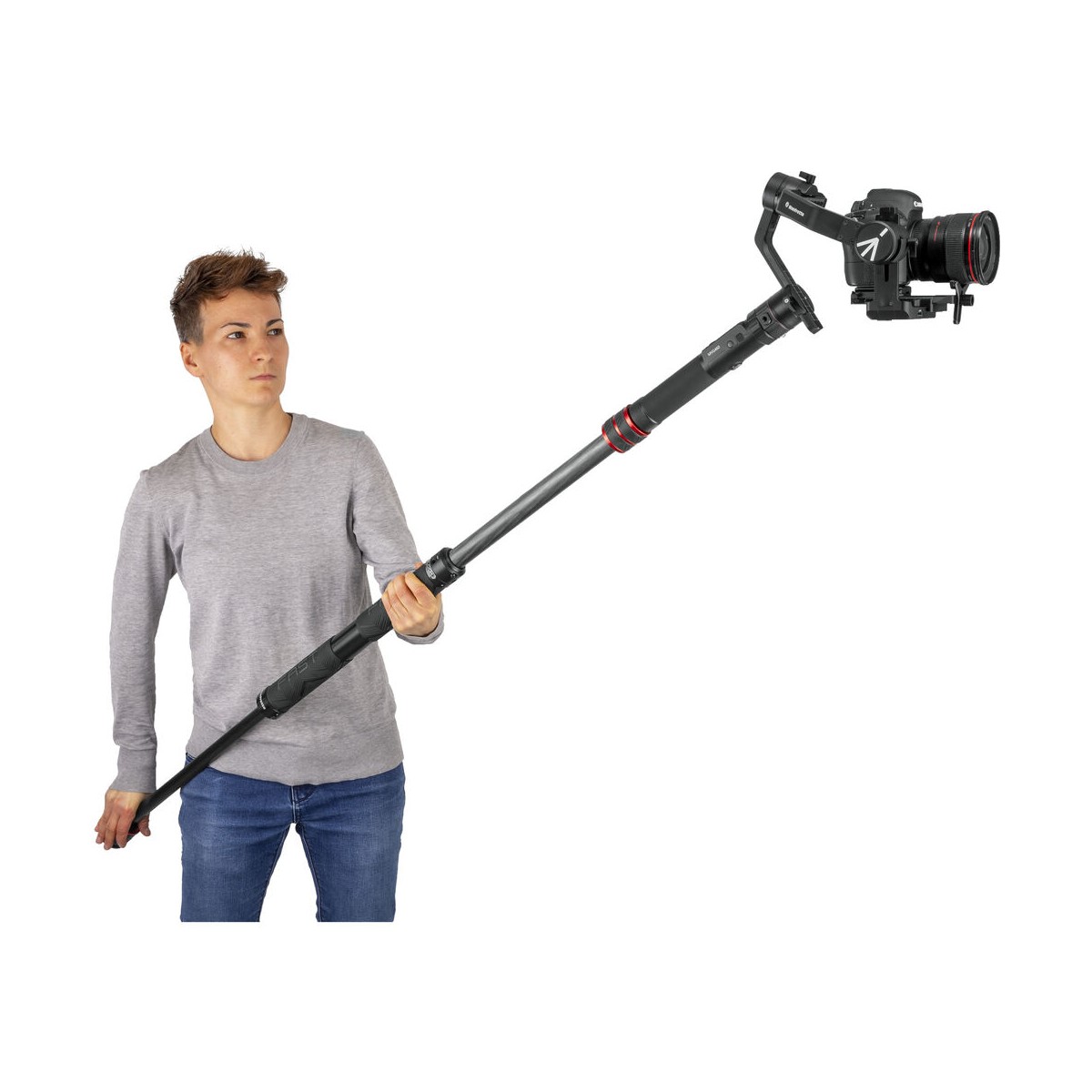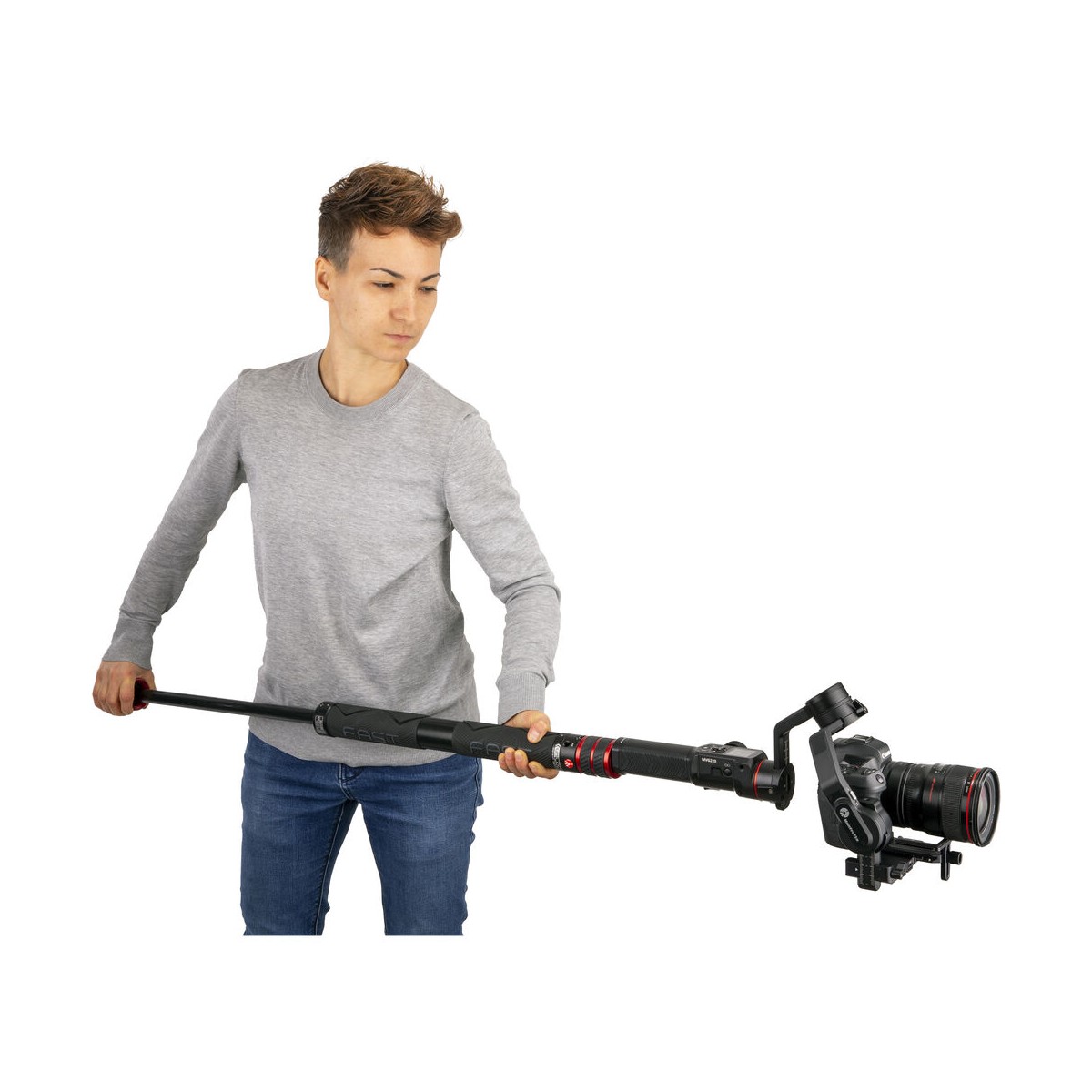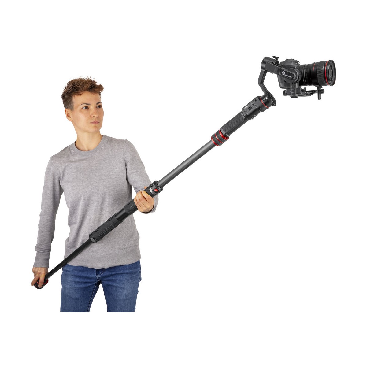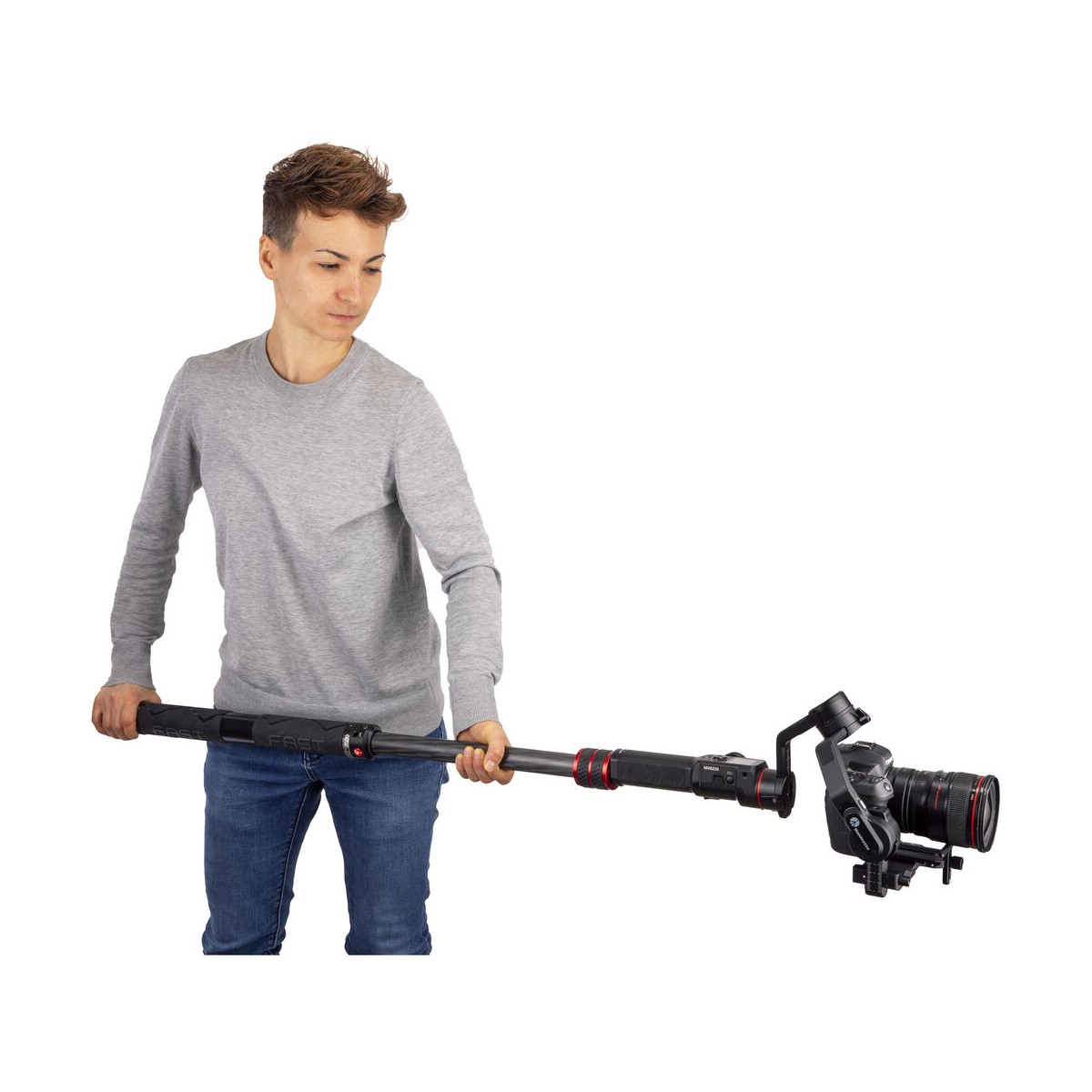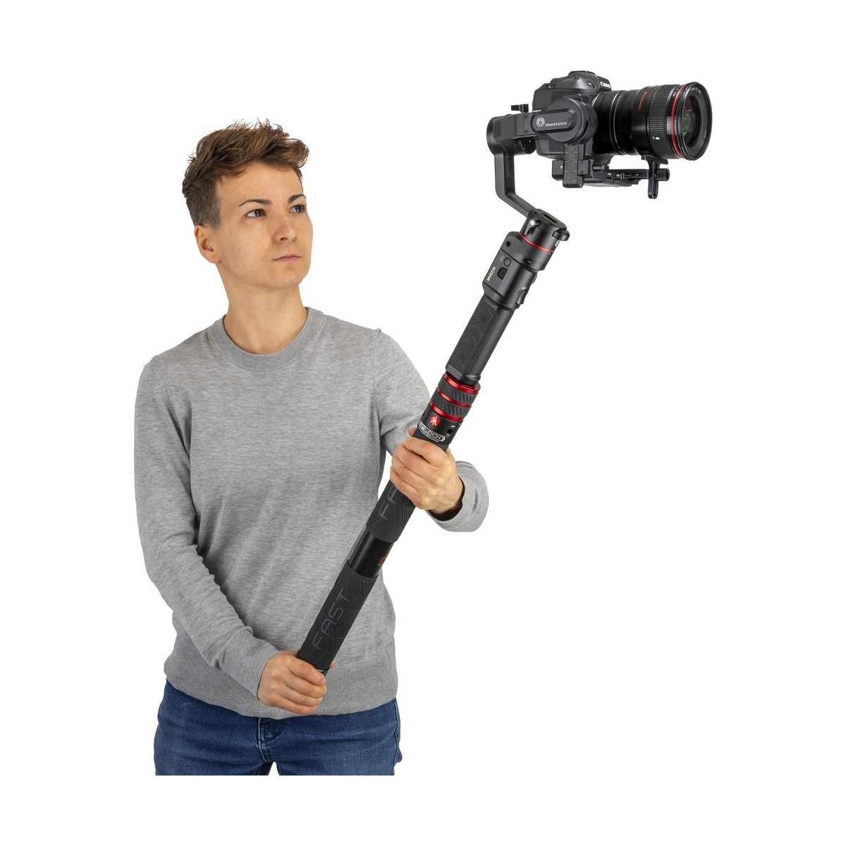 بوم گیمبال Fast GimBoom مانفروتو، یک دستگیره گریهدار با قابلیت افزایش طول است که قابلیتهای بسیار گستردهای را در هنگام فیلمبرداری با گیمبال در اختیار کاربران میگذارد. این محصول را میتوان از طریق پیچهای یکچهارم و یا سههشتم اینچی به انواع گیمبالها متصل کرد و بعد از اتصال، امکاناتی مانند تصویربرداری از زوایای پایین و ارتفاع بالا به گیمبال اضافه خواهد شد. این گریپ افزایش طول دستگیره گیمبال مجهز به قفلهای Fast Twist-Lock است که با چرخاندن میله، امکان تنظیم طول گیمبال بهآسانی در دسترس کاربران خواهد بود. حداکثر طول این بوم برابر با ۱۱۶ سانتیمتر است.