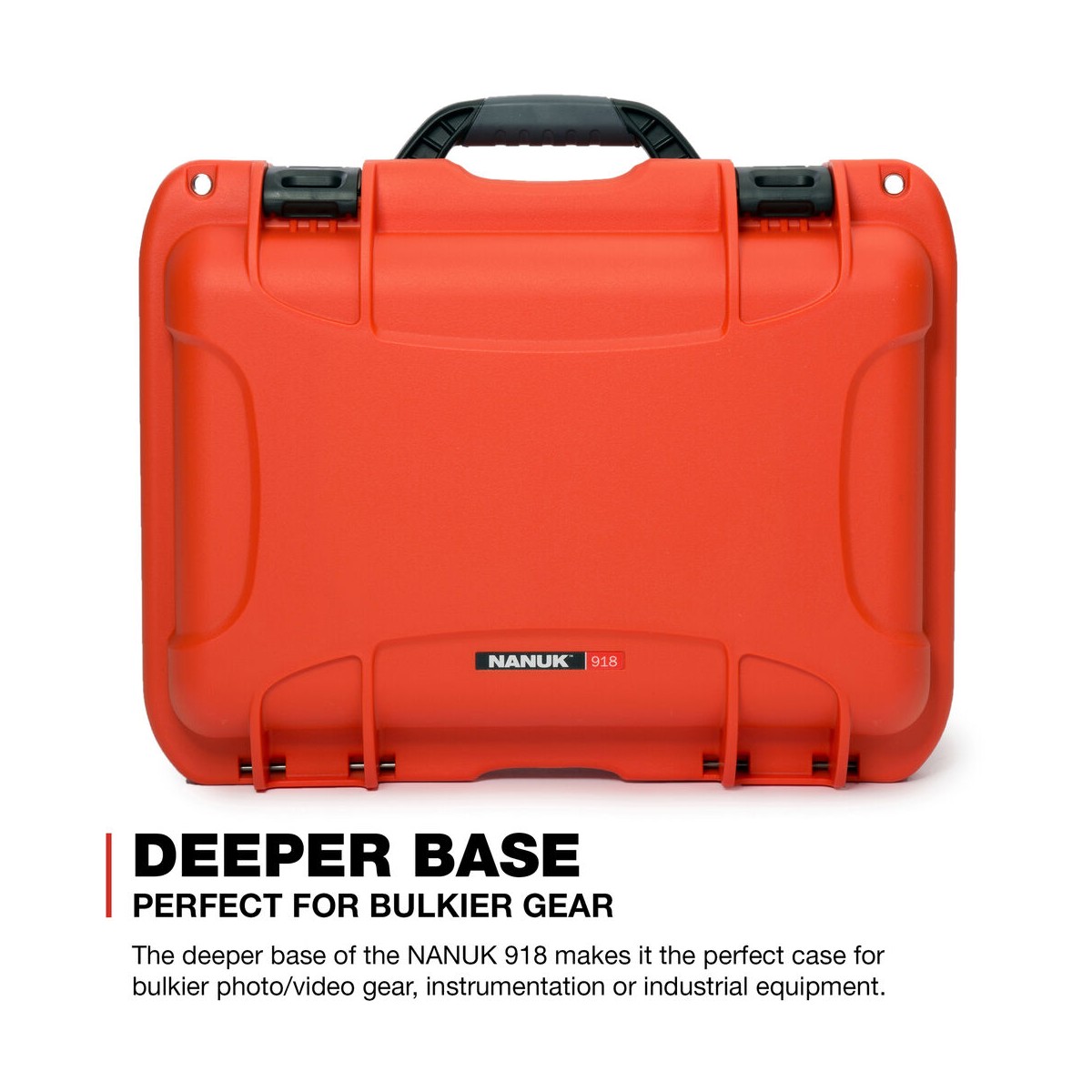 هارد کیس مقاوم در برابر نفوذ آب، گردوغبار و ضد خرد شدن نانوک مدل 918 از پلیپروپیلن رزین NK-7 ساخته شده است و میتوان از آن برای نگهداری و حمل تجهیزات کوچک مانند دوربین، هارد، دوربینهای شکاری، باتری، لنز، گوشی و یا تجهیزات صدابرداری استفاده کرد. این کیس دارای فوم چندلایه با حجم ۳۷.۸×۲۴.۹×۲۱.۸ سانتیمتر است که میتوان آن را برای قرار دادن لوازم مختلف برش داد. برای محافظت کامل از تجهیزات درب این کیس دارای فوم شانه تخممرغی و قسمت کف آن نیز دارای یک لایه محکم است.