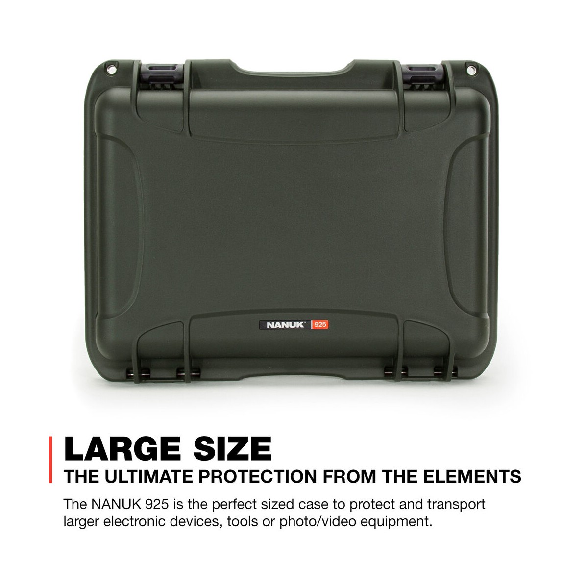 هارد کیس مقاوم در برابر نفوذ آب، گردوغبار و ضد خرد شدن نانوک مدل 925 از پلیپروپیلن رزین NK-7 ساخته شده است و میتوان از آن برای نگهداری و حمل تجهیزات کوچک مانند دوربین، هارد، دوربینهای شکاری، باتری، لنز، گوشی و یا تجهیزات صدابرداری استفاده کرد. این کیس دارای فوم چندلایه با حجم ۴۳.۲×۳۰×۱۶.۳ سانتیمتر است که میتوان آن را برای قرار دادن لوازم مختلف برش داد. برای محافظت کامل از تجهیزات درب این کیس دارای فوم شانه تخممرغی و قسمت کف آن نیز دارای یک لایه محکم است.