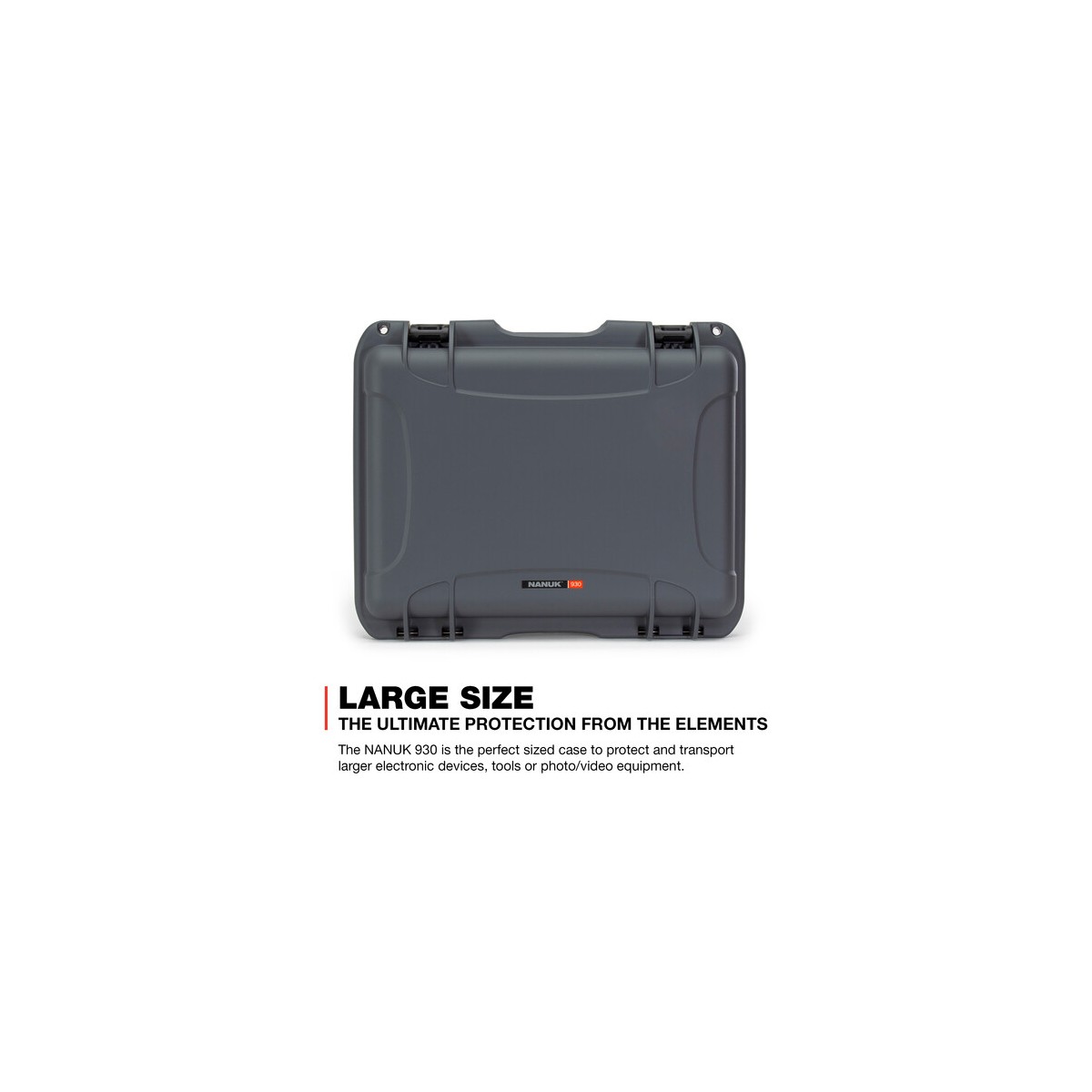 هارد کیس مقاوم در برابر نفوذ آب، گردوغبار و ضد خرد شدن نانوک مدل 930 از پلیپروپیلن رزین NK-7 ساخته شده است و میتوان از آن برای نگهداری و حمل تجهیزات کوچک مانند دوربین، هارد، دوربینهای شکاری، باتری، لنز، گوشی و یا تجهیزات صدابرداری استفاده کرد. این کیس دارای فوم چندلایه با حجم ۴۵.۷×۳۳×۱۷.۵ سانتیمتر است که میتوان آن را برای قرار دادن لوازم مختلف برش داد. برای محافظت کامل از تجهیزات درب این کیس دارای فوم شانه تخممرغی و قسمت کف آن نیز دارای یک لایه محکم است.