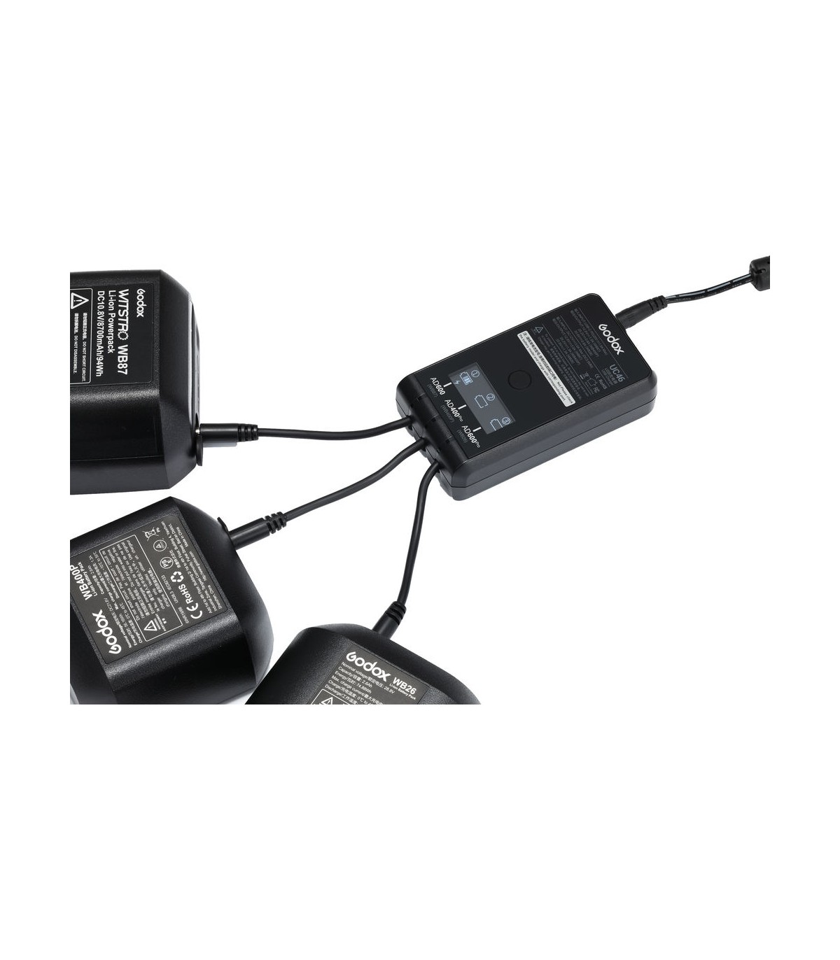 شارژر مولتی Godox USB Charger UC46 یک شارژر دوگانه USB Type-C و DC است که برای باتری های قابل شارژ گودکس WB400P، WB87 و WB26 طراحی شده است. این شارژر با کاربری آسان و مناسب حمل و نقل، قابلیت شارژ 3 باتری را به به ترتیبی که کاربر مشخص می کند دارد.
