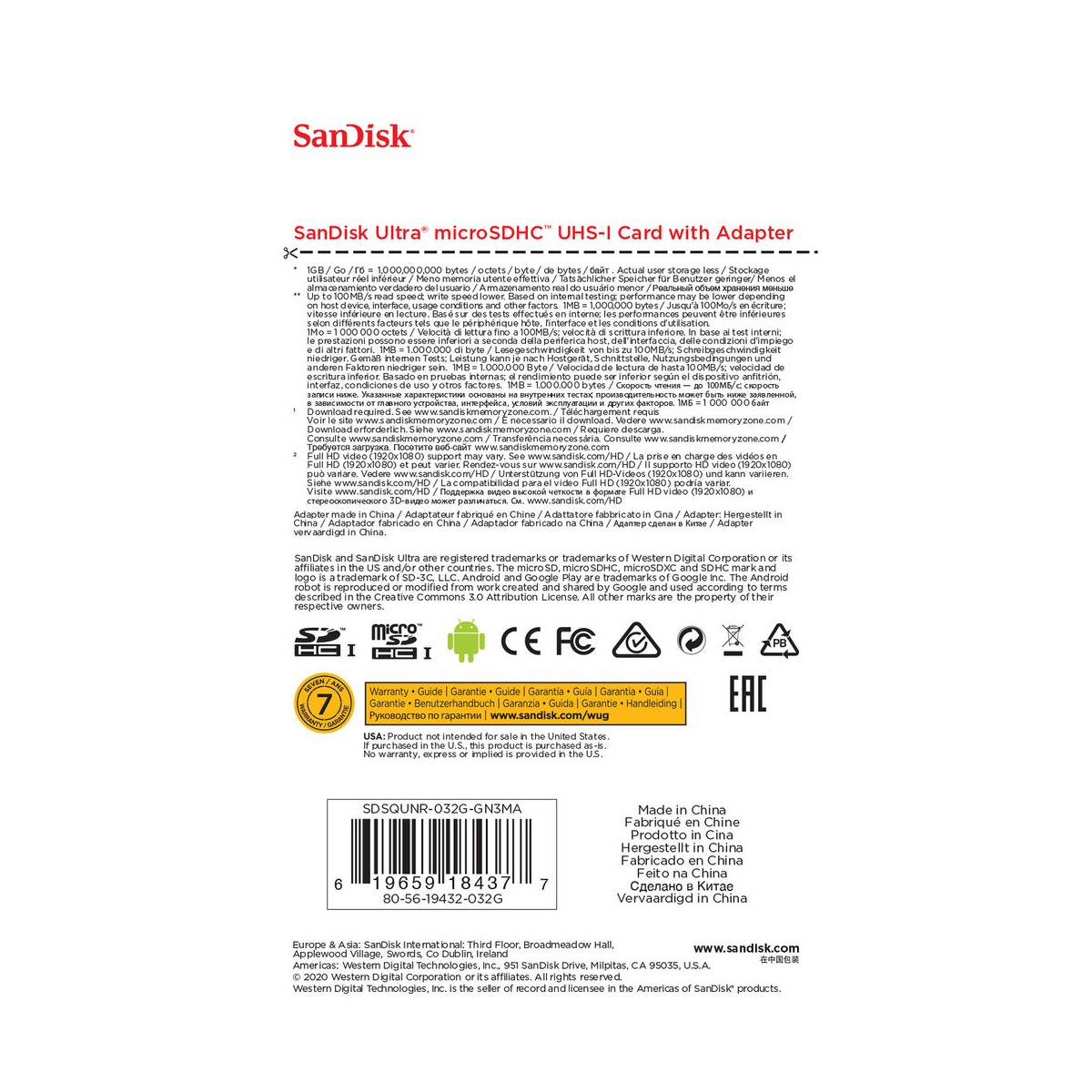 این کارت حافظه، کلاس ۱۰ و از نوع UHS-I است که برای ضبط سریع و روان ویدئوهای فول اچدی (1080p) بسیار مناسب است. اطلاعات را با سرعت ۱۰۰ مگابایت بر ثانیه بازخوانی میکند که باعث میشود عکسها و ویدئوها را سریعتر به رایانه انتقال داد. با نصب نرمافزار اختصاصی Memory ZoneSanDisk روی دستگاه اندرویدی خود، فایلهای خود را بهراحتی مدیریت کنید. با این نرمافزار امکان مشاهده، دسترسی و تهیه نسخه پشتیبان از اطلاعات ذخیرهشده روی کارت حافظه وجود دارد. در داخل بستهبندی محصول یک مبدل SD قرار دارد. با این مبدل میتوان از این کارت حافظه در دوربینهای دیجیتال نیز استفاده کرد.