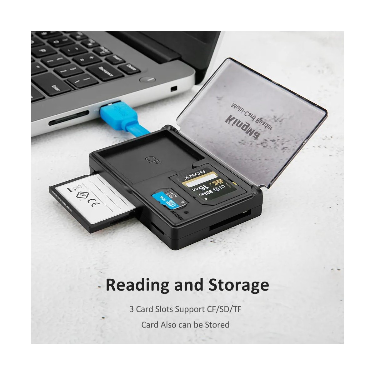 یکی از ویژگیهای برجسته این دستگاه، پشتیبانی از انواع کارتهای حافظه است. کینگما All-in-1 قابلیت خواندن کارتهای SD، MicroSD، CF و XD را دارد. این ویژگی، آن را به ابزاری مناسب برای عکاسان، فیلمبرداران و افرادی تبدیل میکند که نیاز به دسترسی سریع به اطلاعات ذخیرهشده در کارتهای حافظه دارند.