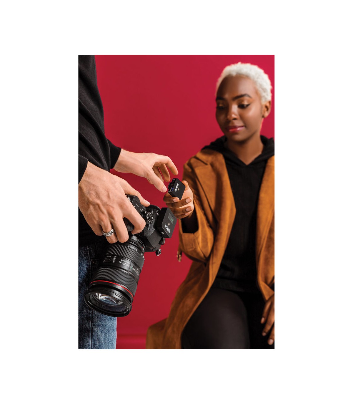 ضبط صدا با بالاترین کیفیت حتی بدون استفاده از میکروفون جداگانه نیز ممکن است. در حقیقت کیت میکروفن بی سیم Rode مدل Wireless GO یک مجموعه شامل یک فرستنده گیرهای با میکروفون تمامجهته و یک گیرنده گیرهای است. به همراه این محصول تعدادی از لوازم جانبی مورد نیاز برای استفادههای مختلف نیز ارائه شده است. فرستنده به سادگی به لباس یا کمربند سوژه متصل میشود، گیرنده نیز به راحتی توسط یک کابل به موبایل یا دوربین یا رکوردر متصل میشود. در صورتی که نیاز به دریافت صدایی شفافتر و دقیقتر وجود داشته باشد، امکان اتصال میکروفون یقهای Rode Lavalier GO نیز به فرستنده این مجموعه وجود دارد.