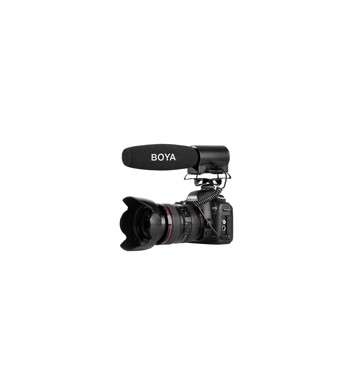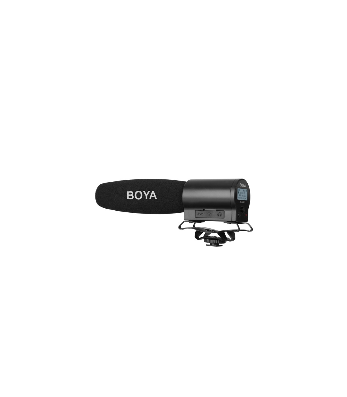 میکروفن شات گان Boya مدل BY-DMR7 توسط همین کمپانی و برای ضبط صدای باکیفیت با دوربینهای دیجیتال طراحی و تولید شده است. با استفاده از این میکروفن میتوانید تا به ضبط صدای ۲۴ بیت ۴۸ کیلوهرتز پرداخته و صدای دریافتی را بر روی یک کارت حافظه microSD ذخیره نمایید. به همین منظور در کنار این میکروفن درگاهی برای اتصال کارتهای حافظه microSD تا حجم ۳۲ گیگابایت تعبیه شده است. به این ترتیب میتوانید حتی بدون در اختیار داشتن دوربین دیجیتال نیز به ضبط صدا با این محصول بپردازید. برای اتصال به دوربین، در کنار درگاه کارت حافظه یک خروجی ۳.۵ میلیمتری نیز قرار دارد که میتوانید از آن بهره ببرید.