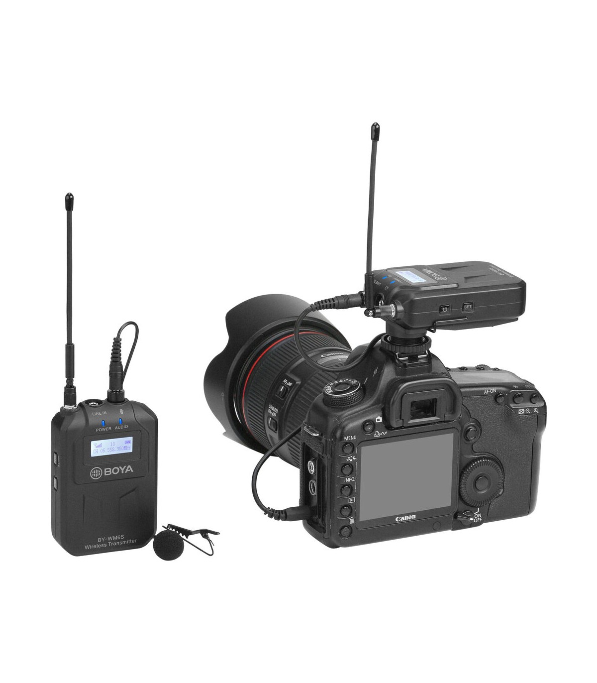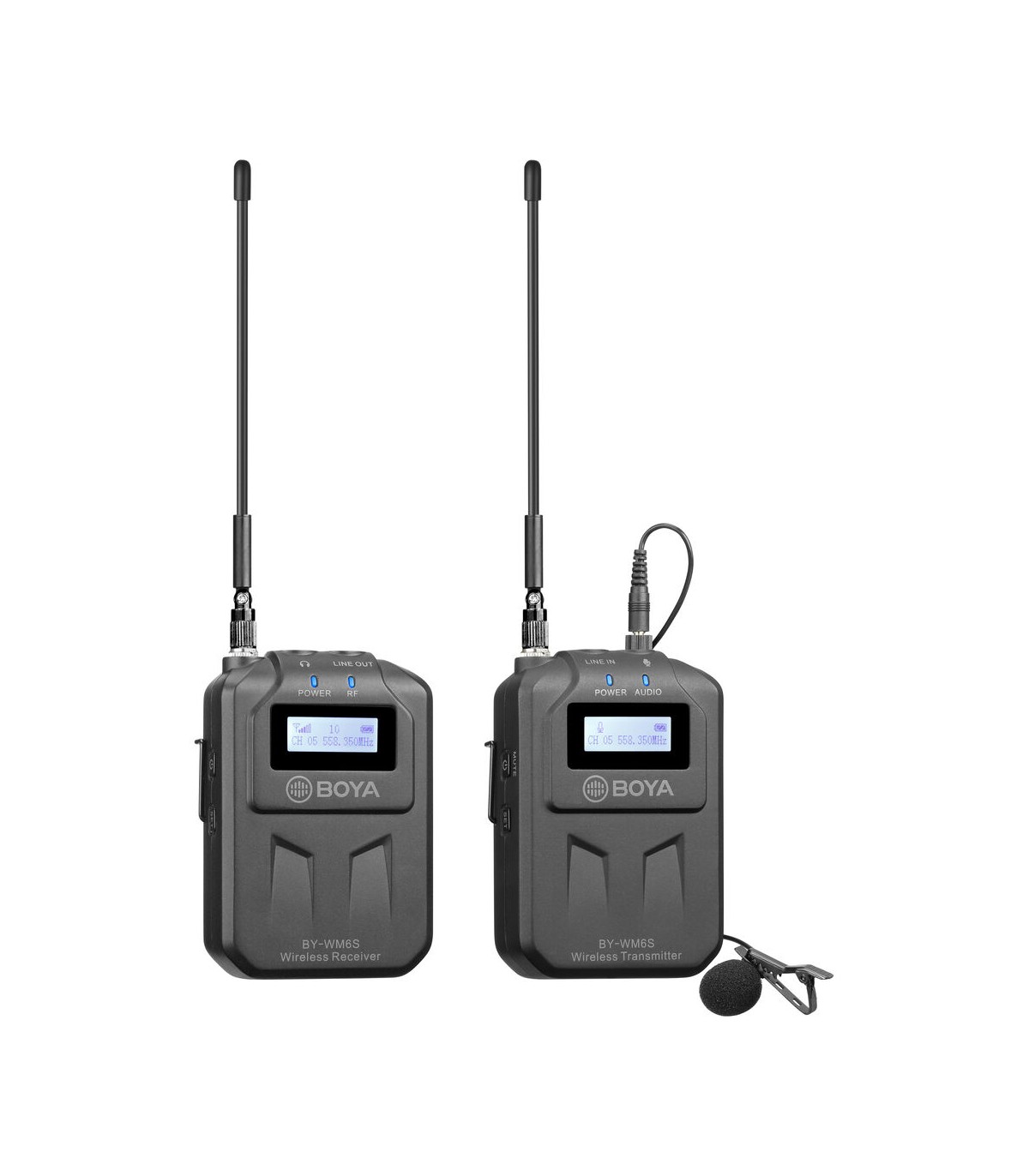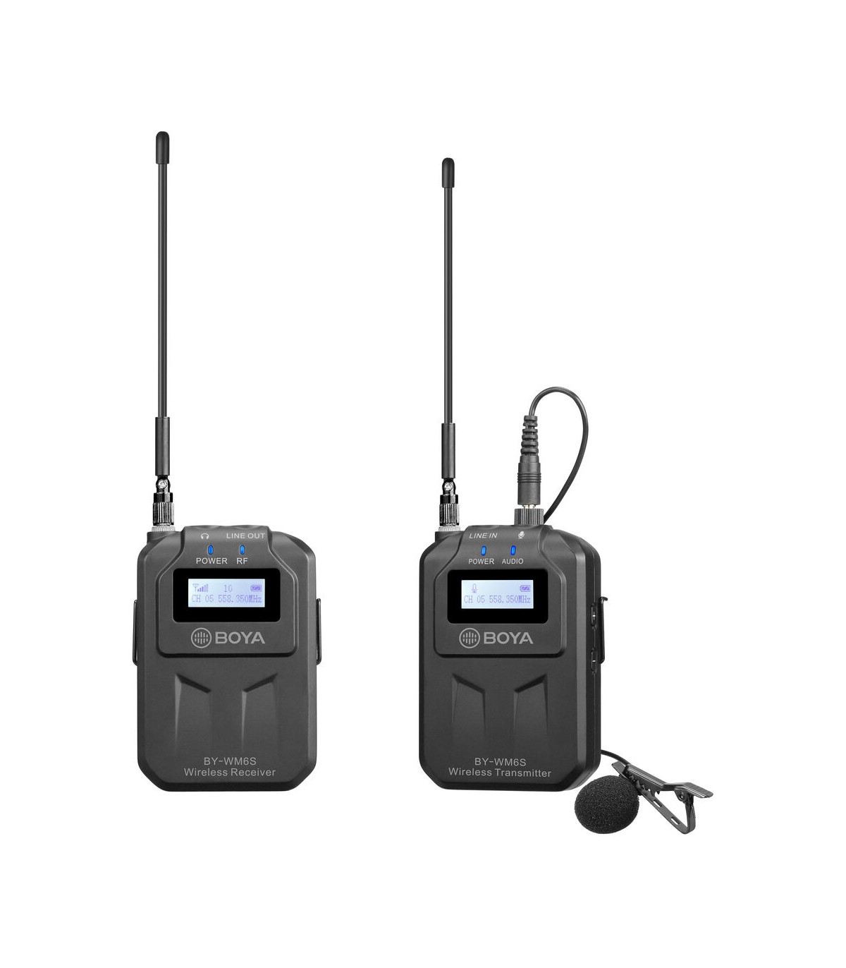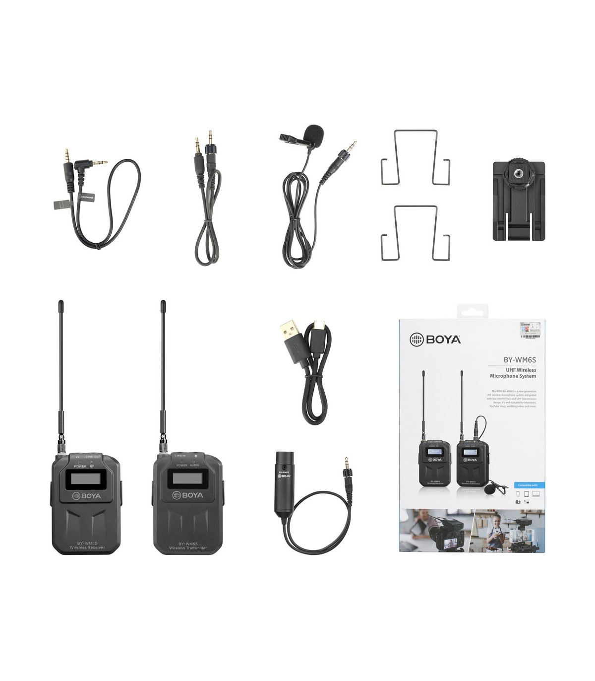 میکروفن بیسیم Boya مدل BY- WM6S یک کیت میکروفن بیسیم است که دارای یک فرستنده همراه با میکروفن و یک گیرنده میباشد. گیرنده این محصول دارای مانت کفشکی برای اتصال به دوربینهای دیجیتال است. از سوی دیگر فرستنده این کیت دارای مانت کلیپسی بوده بنابراین بسادگی میتوانید آن را روی لباس نصب نمایید. فرستنده بویا WM6S همراه با میکروفن لاوالیر Omnidirectional ارائه میشود که در کنار اتصال کلیپسی، ابزاری بسیار مناسب را برای ضبط صدای اشخاص نموده است که از ضبط فیلم تا مصاحبه، ولاگ و تولید محتوای شبکههای اجتماعی مانند اینستاگرام کاربردهای متنوعی دارد. برای راحتی کار لازم به ذکر است که برد استفاده بیسیم از این محصول برابر با ۷۰ متر میباشد.