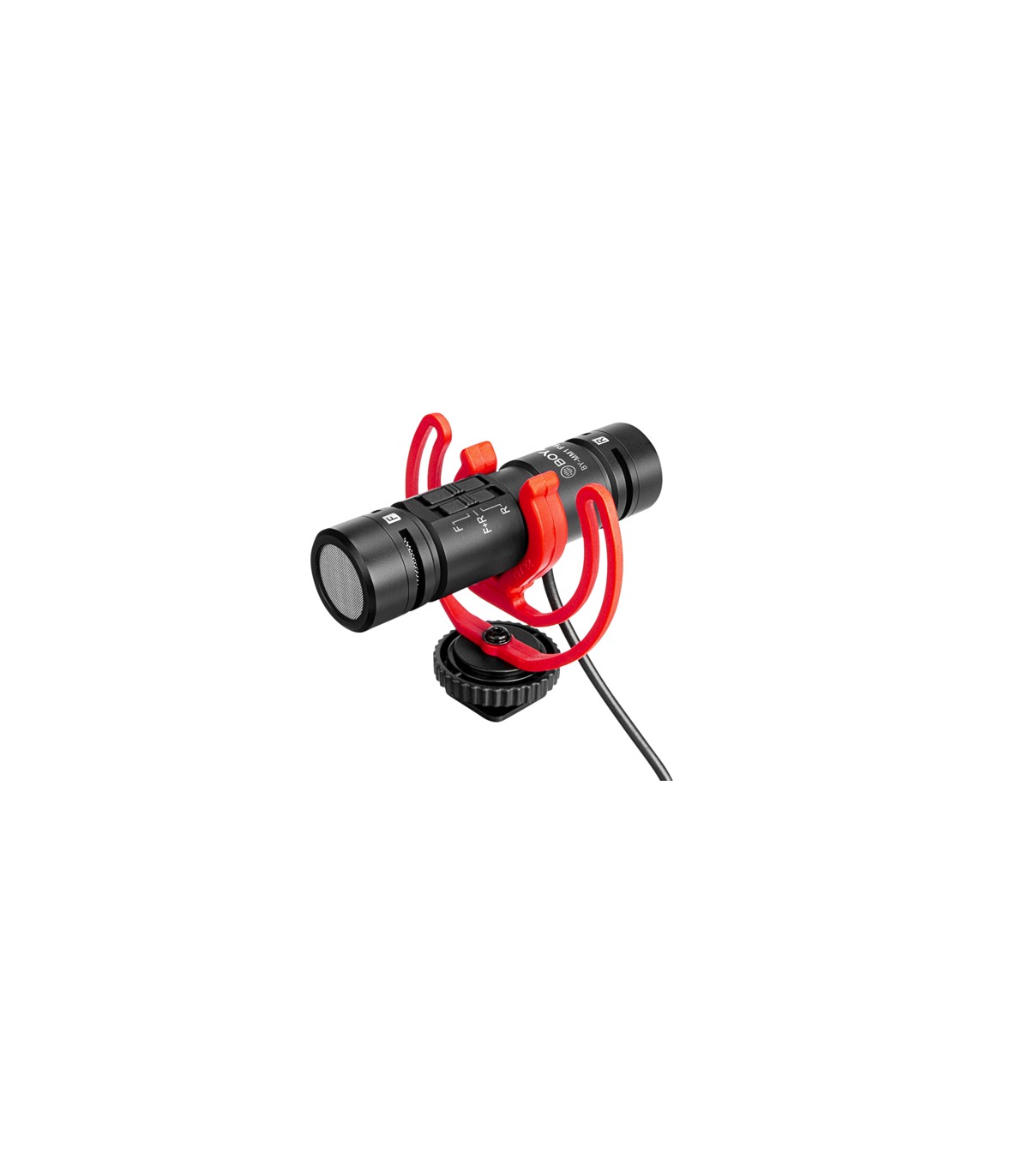 میکروفون شات گان بویا مدل BY-MM1 Pro برای ضبط صدا با موبایل، تبلت و دوربین طراحی شده تا در کنار تعیین محدوده ضبط صدا، کیفیت کلی صدای ضبط شده نیز به نسبت میکروفون داخلی دستگاهها پیشرفت قابل ملاحظهای داشته باشد. این محصول از دو کپسول میکروفون سوپرکاردیوید (یکی در هر سر میکروفون) بهره میبرد و قابلیت تنظیم جهت ضبط صدا در سه حالت جلو، پشت و هردو را توسط یک سوییچ تعبیه شده بر روی دستگاه را دارد.