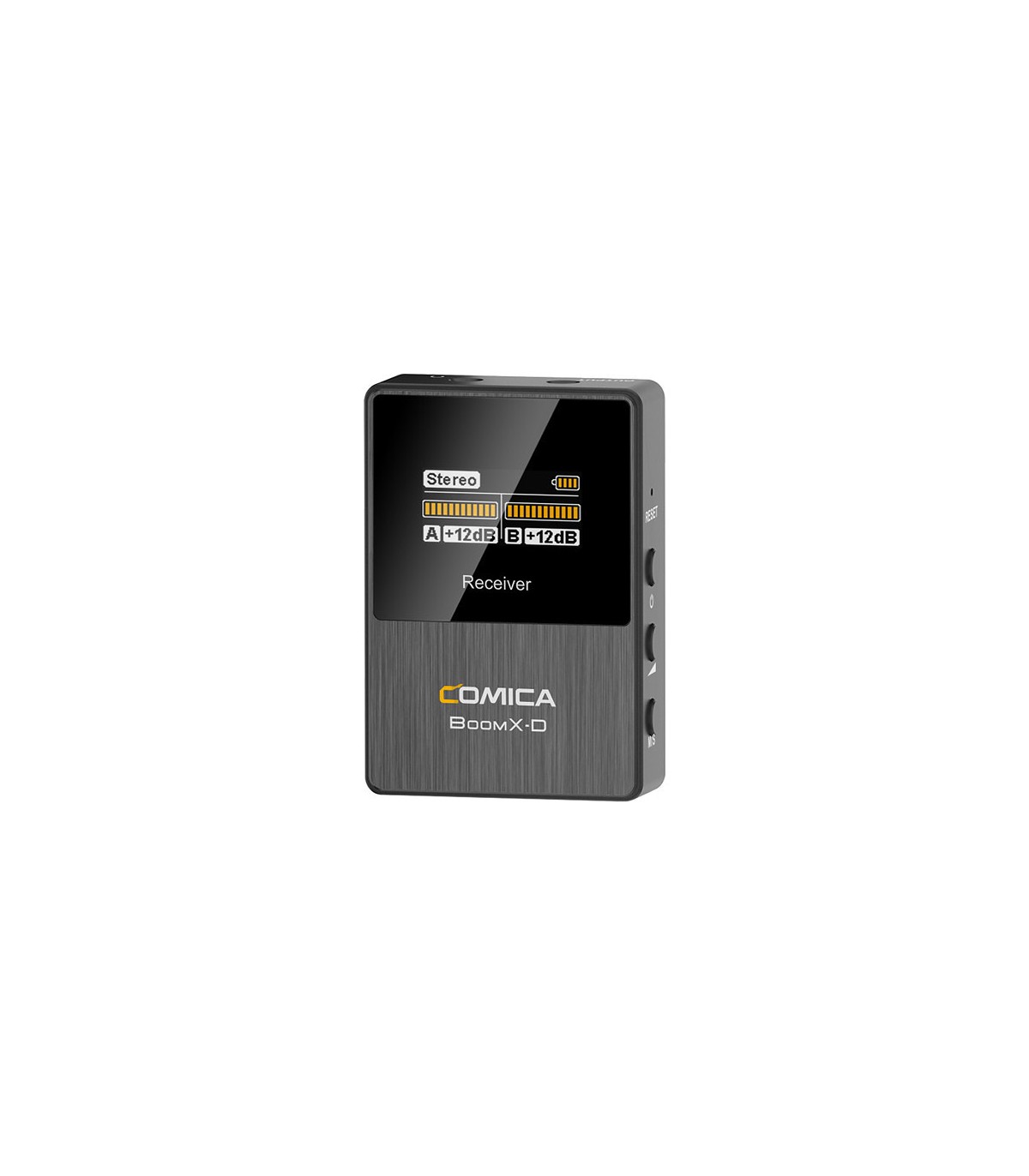 • ست میکروفون بی سیم کامیکا Comica BoomX-D D1 نیازی به جفت شدن ندارد و تنها با روشن کردن و اتصال گیرنده به دوربین یا موبایل، آماده استفاده است.