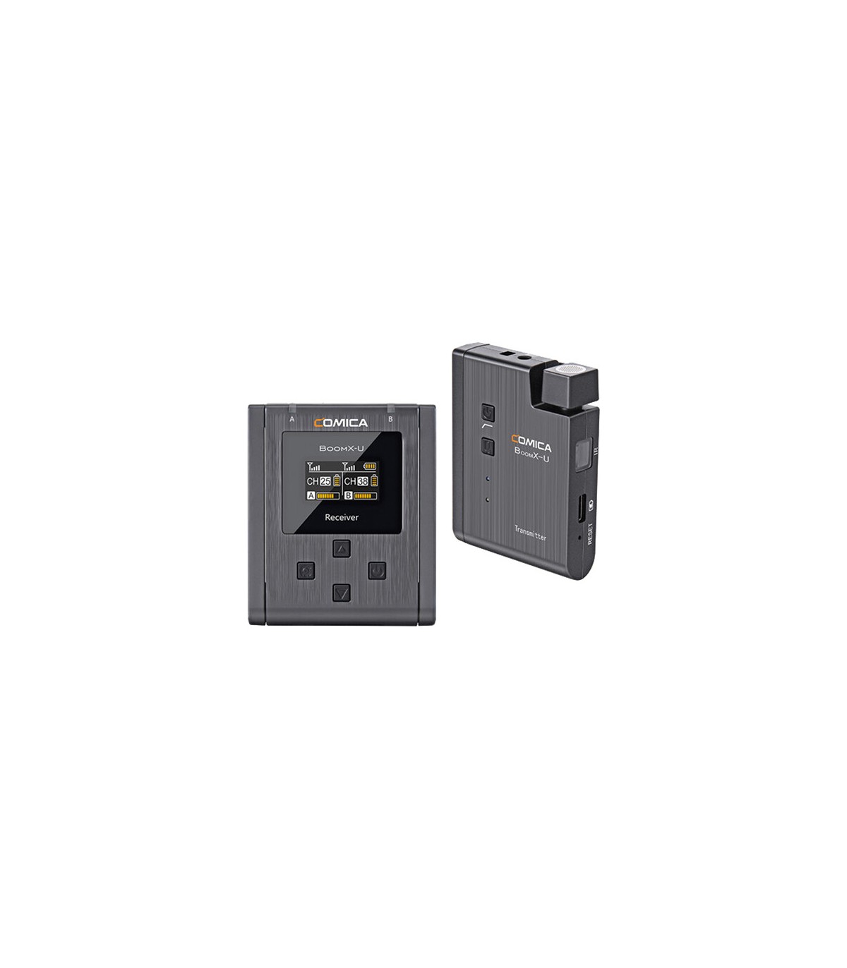 ست میکروفون بی سیم کامیکا Comica BoomX-U U1 برای خبرنگاران، فیلمبرداران و ولاگر ها طراحی شده و یک سیستم میکروفون بدون سیم، شامل یک فرستنده با میکروفون و یک گیرنده دو کاناله است که قابلیت اتصال فرستنده (میکروفون) دوم را به طور همزمان دارد. این سیستم اتصال بیسیم قابل اعتمادی ایجاد می کند و قابلیت انتقال سیگنال صدای شفاف را تا فواصل 120 متری دارد. این مجموعه راه حل کاملی برای ضبط مکالمات، مصاحبه ها و سخنرانی از یک نفر است و به طور مستقیم به دوربین بدون آیینه یا DSLR، دوربین فیلمبرداری یا دستگاه های قابل حمل متصل می شود.