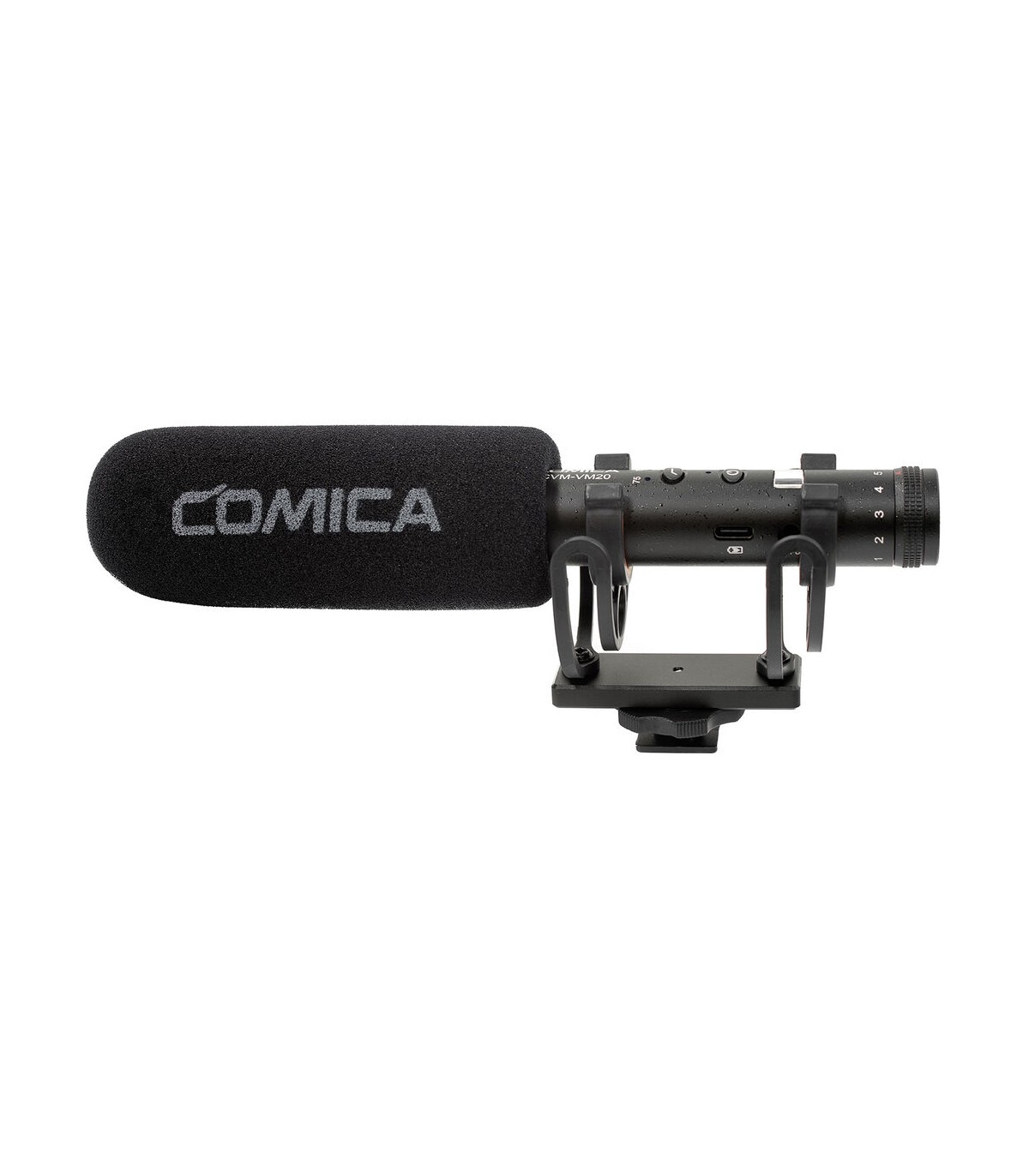 پیچ Gain این محصول به طور یکنواخت و غیر پله پله عمل می کند؛ در نتیجه تغییر سطح صدای میکروفون در هنگام ضبط، بدون نگرانی از نویز های اضافه امکان پذیر است. اگر صدای بم ناشی از نویز محیط بر روی صدا اثر می گذارد، می توان از فیلتر Low-Cut داخلی این میکروفون در دو حالت 75 و 150 هرتز استفاده کرد. شاک مانت همراه میکروفون شاتگان کامیکا Comica CVM-VM20 نیز باعث ضبط صداهایی شفاف و بدون نویز ناشی از حرکت دوربین می شود.
