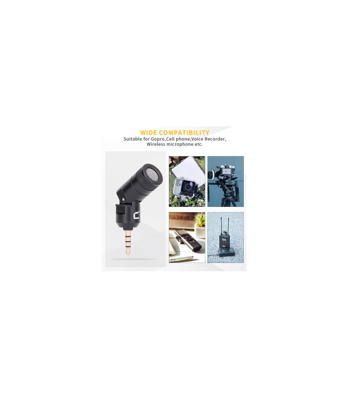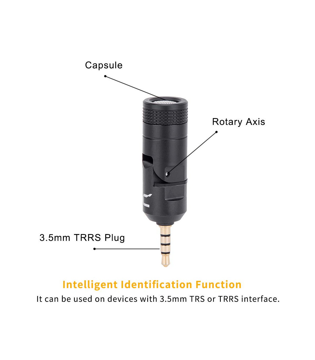 میکروفون موبایل کامیکا Comica CVM-VS07C به هر دستگاهی که پورت 3.5 میلی متری صدا داشته باشد متصل شده و به صورت خودکار بین دو حالت TRS و TRRS تغییر وضعیت می دهد تا استفاده از آن با انواع دوربین ها و موبایل ها ممکن باشد.