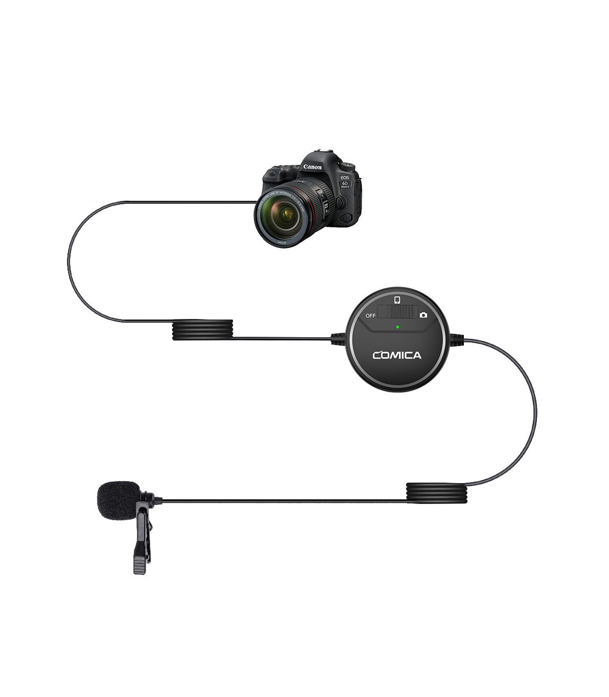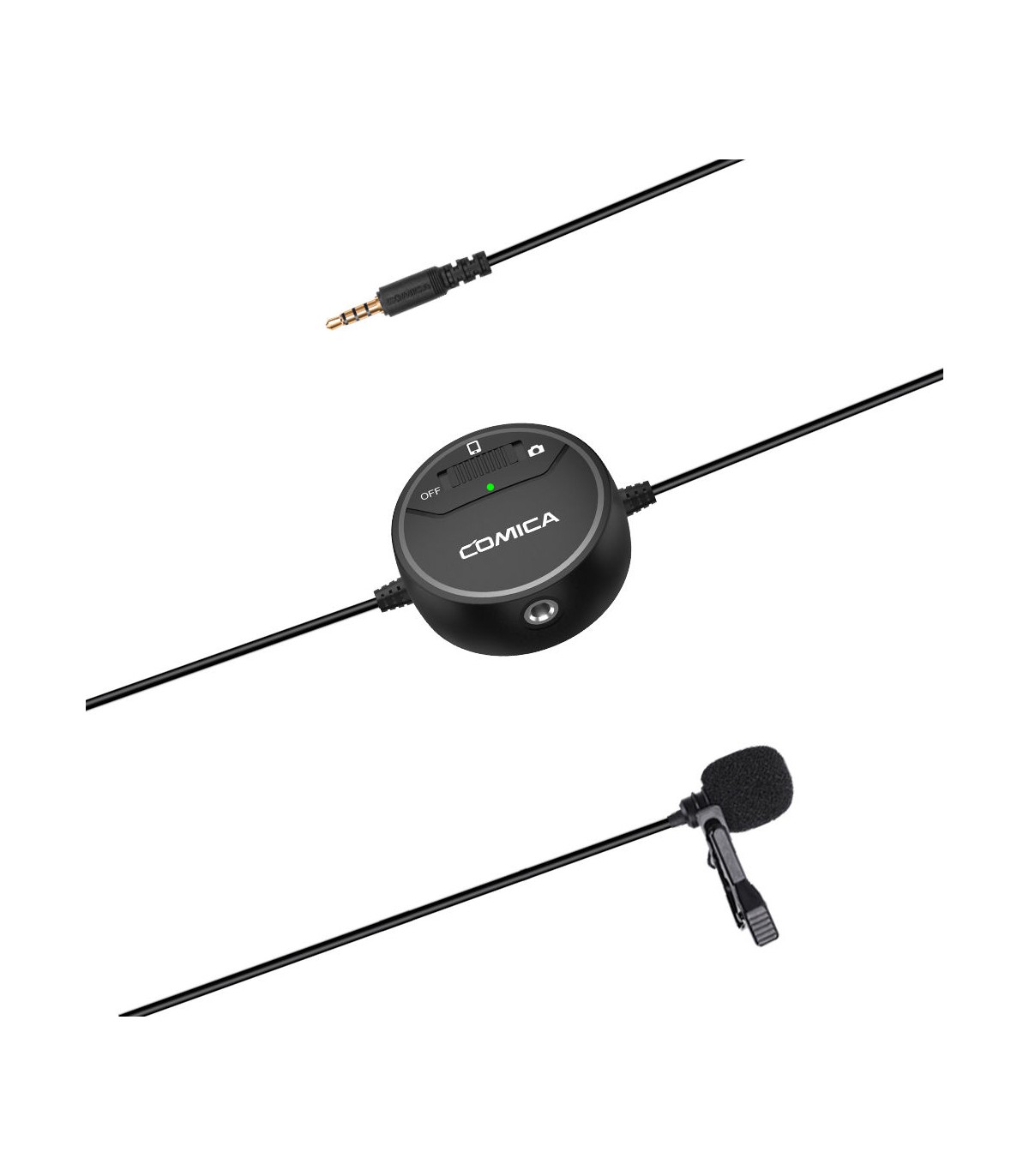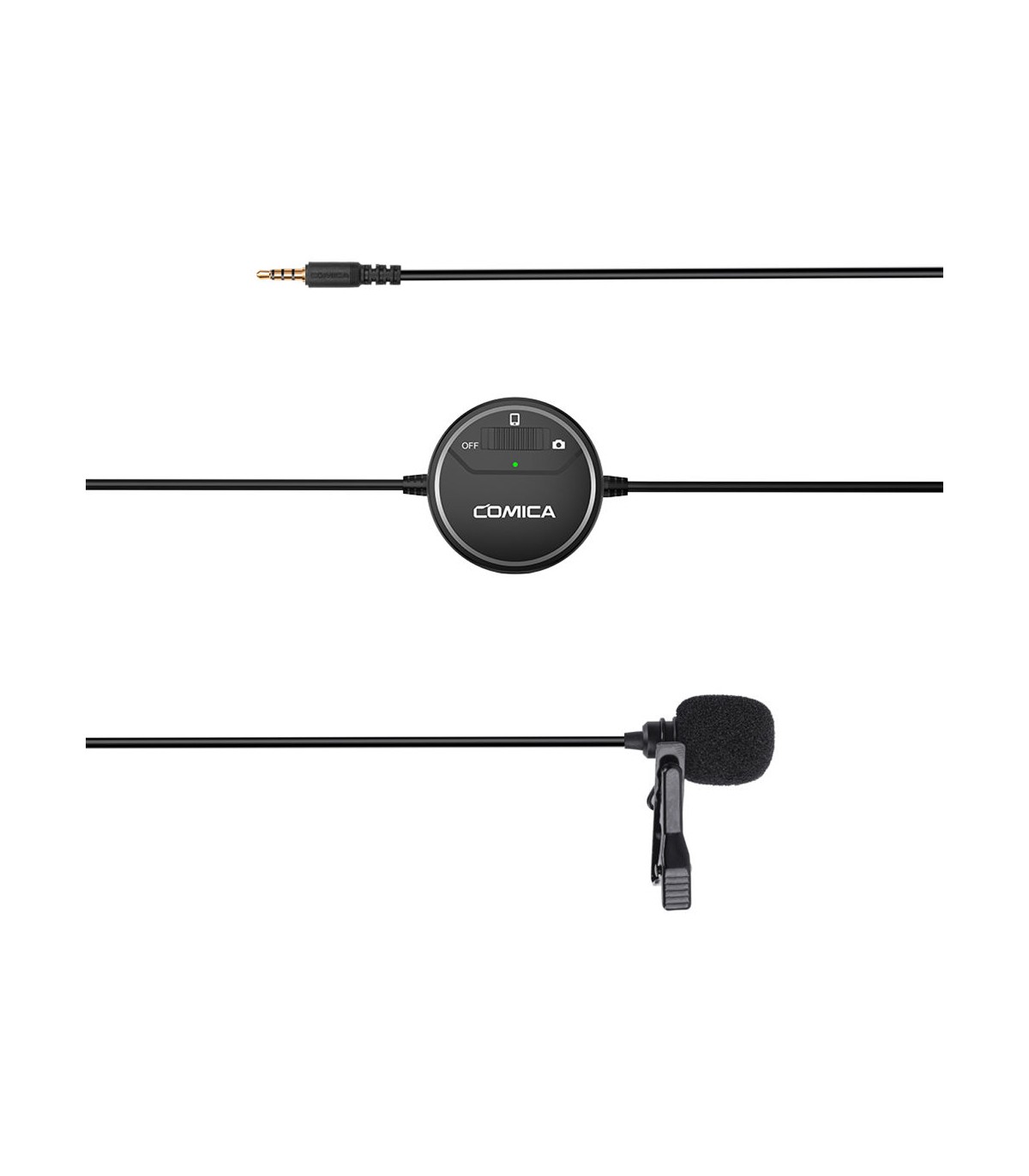میکروفون یقه ای کامیکا Comica SIG.LAV V03 یک میکروفون تمام جهته است که صدای شفاف و دقیقی را با قابلیت تنظیم حجم صدا و مانیتور مستقیم آن، به دوربین بدون آیینه، DSLR یا رکوردر منتقل کند. استفاده از این میکروفون با تلفن های همراه مجهز به سیستم عامل اندروید و iOS نیز ممکن است. در قسمت میانی کابل 6 متری این میکروفون یک ماژول با گیره کمربند برای تنظیم حجم صدا و خروجی هدفون قرار گرفته تا تنظیم سطح صدا همزمان با مانیتورینگ مستقیم آن ممکن باشد. در کنار آن ها نیز سوییچ مخصوصی قرار گرفته که وضعیت اتصال میکروفون را بین دو حالت دوربین و موبایل تنظیم می کند. در نتیجه اتصال آن در دو حالت TRS و TRRS ممکن خواهد بود.