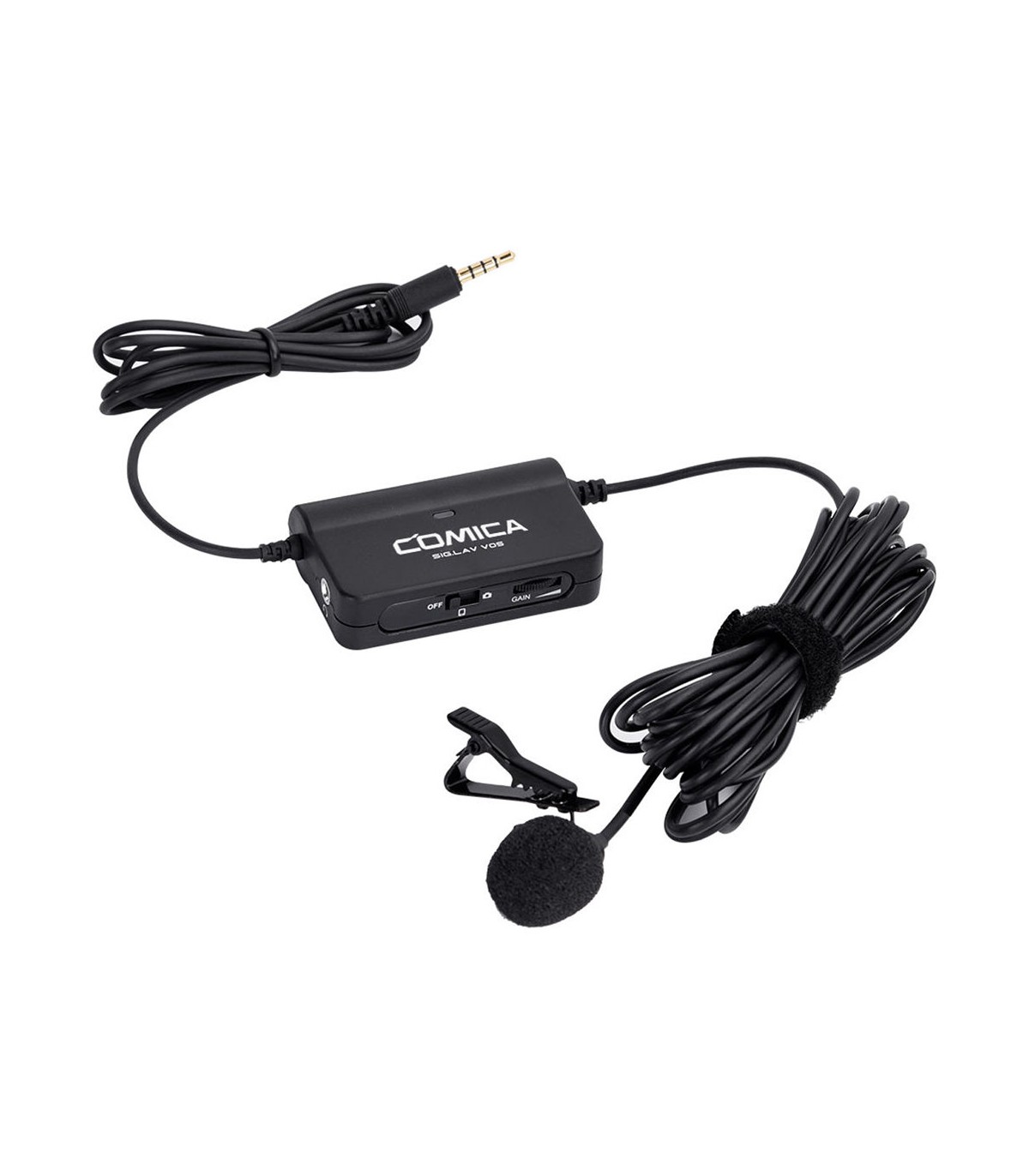 میکروفون یقه ای کامیکا Comica SIG.LAV V05 یک میکروفون تمام جهته است که صدای شفاف و دقیقی را با قابلیت تنظیم حجم صدا و مانیتور مستقیم آن، به دوربین بدون آیینه، DSLR یا رکوردر منتقل کند. استفاده از این میکروفون با تلفن های همراه مجهز به سیستم عامل اندروید و iOS نیز ممکن است. در قسمت میانی کابل این میکروفون یک ماژول برای تنظیم حجم صدا و خروجی هدفون قرار گرفته تا تنظیم سطح صدا همزمان با مانیتورینگ مستقیم آن ممکن باشد. در کنار آن ها نیز سوییچ مخصوصی قرار گرفته که وضعیت اتصال میکروفون را بین دو حالت دوربین و موبایل تنظیم می کند. در نتیجه اتصال آن در دو حالت TRS و TRRS ممکن خواهد بود.