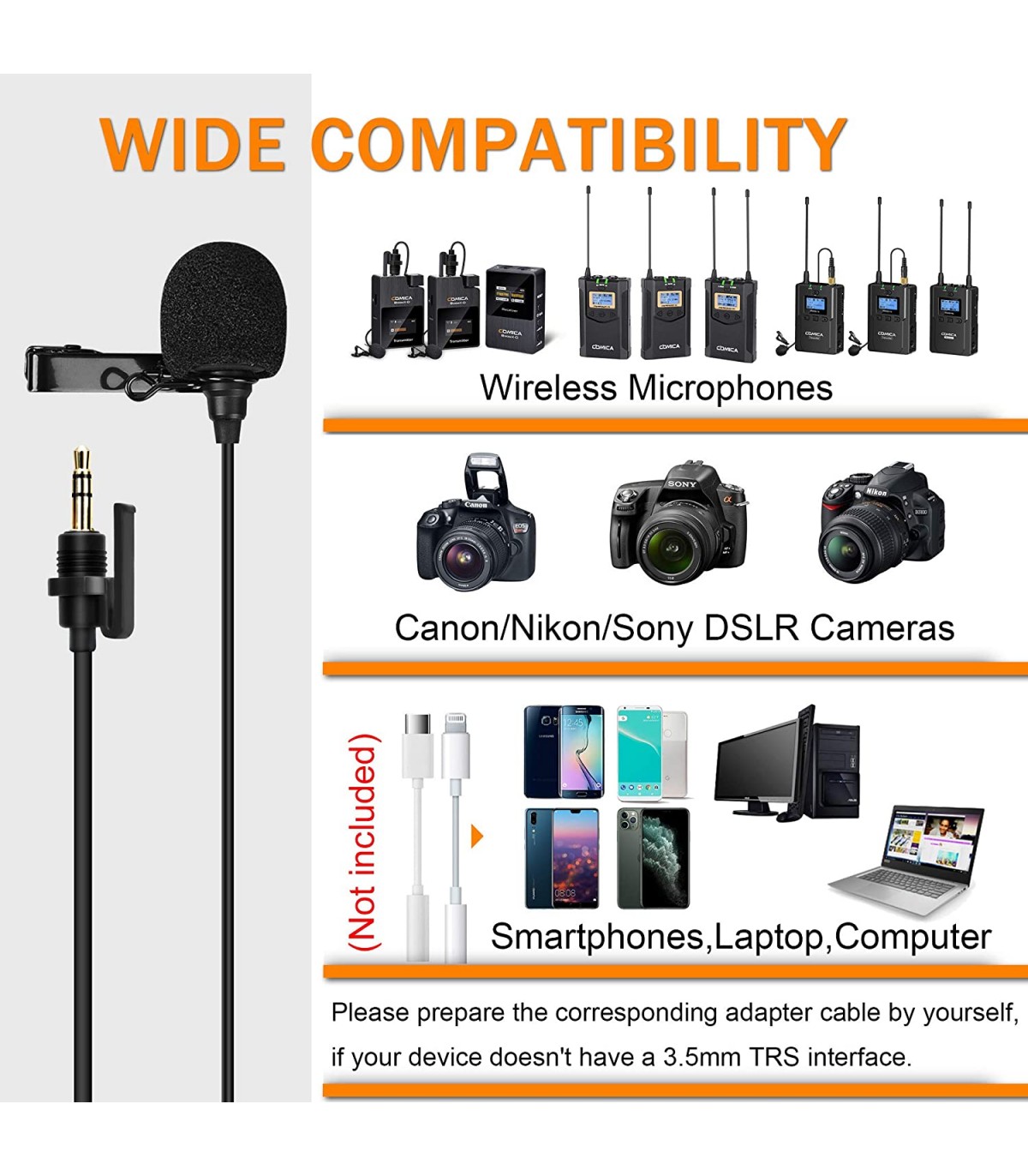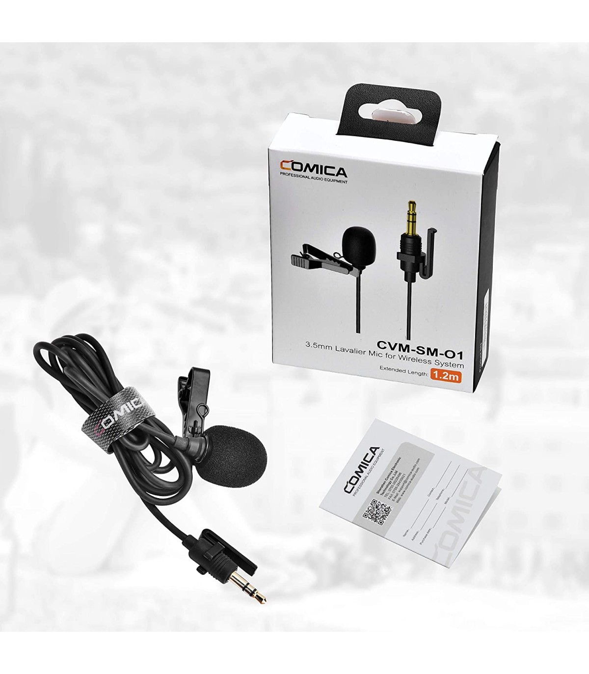 میکروفون یقه ای کامیکا Comica CVM-SM-O1 مناسب اتصال به دوربین های بدون آیینه و DSLR یا فرستنده های کامیکا، سنهایزر یا سایر برند ها است. برای اتصال این میکروفون به موبایل یا تبلت، به یک تبدیل TRS به TRRS نیاز است. نوع کپسول این میکروفون تمام جهته است و صدا را از تمام محیط اطراف میکروفون دریافت می کند. کیفیت انتقال سیگنال توسط سیم این میکروفون بالاست و کانکتور آن با روکشی از طلا پوشانده شده تا علاوه بر نویز کمتر، از آن در برابر خوردگی نیز محافظت کند. طول کابل این میکروفون 120 سانتی متر است و جنس آن از سیلیکون نرم است.