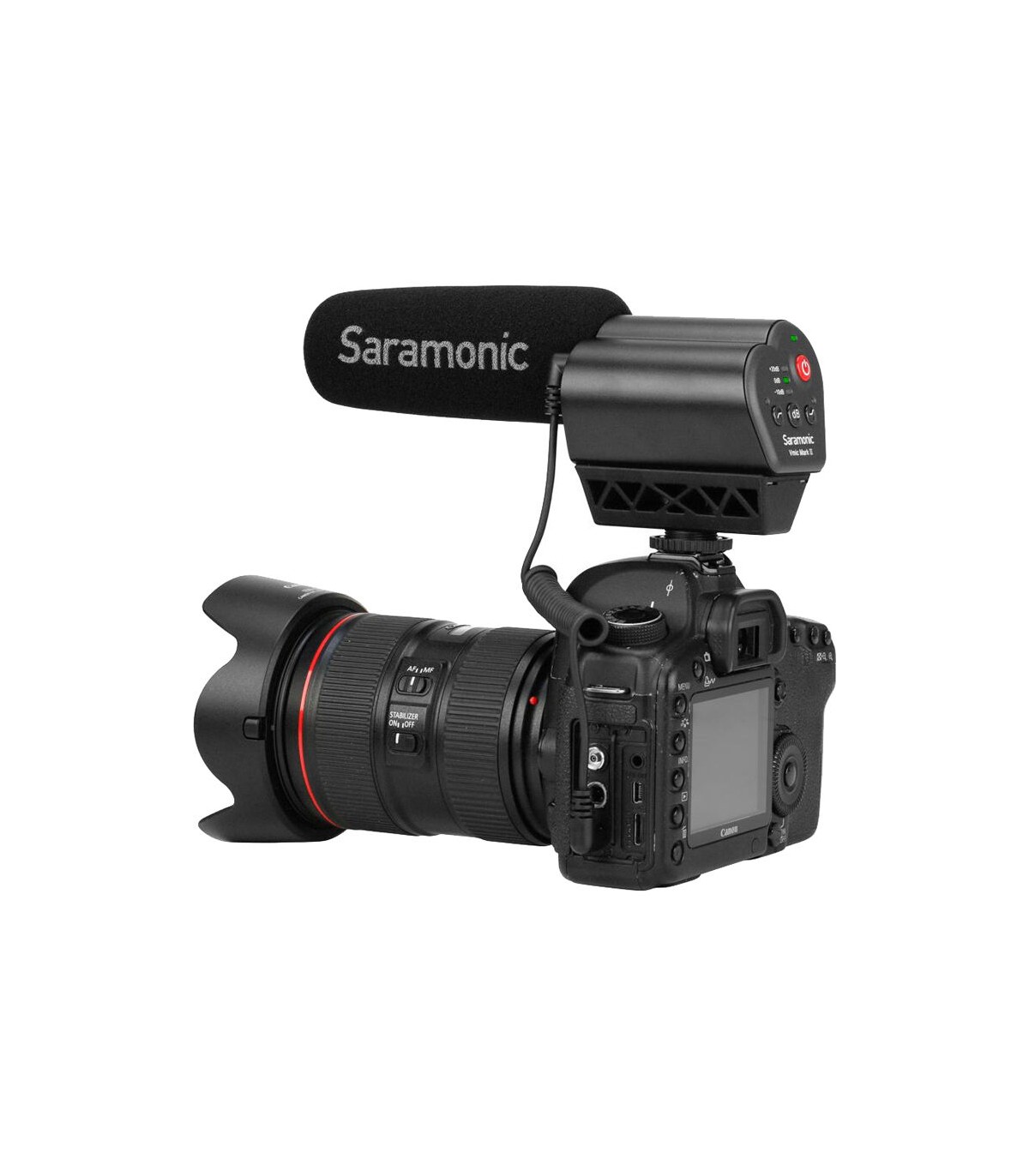 میکروفون شات گان رودوربینی Saramonic مدل Vmic Mark II برای تولیدکنندگان محتوای ویدئویی، خبرنگاران و ولاگرها طراحی شده تا کیفیت صدای ضبط شده در ویدئوهایشان را افزایش دهند. از ویژگیهای اساسی این میکروفون میتوان به ابعاد جمع و جور، وزن سبک و قابلیت مانت بر روی دوربین اشاره کرد. دریافت صدا توسط این محصول تنها از بخش جلویی انجام میشود و دارای تنظیمات سطح و تن صدا و یک خروجی هدفون برای مانیتورینگ مستقیم است. شاکمانت یکپارچه این میکروفون امکان مانت آسان آن را بر روی دوربین یا سهپایه فراهم میکند تا لرزشهای دوربین یا پایه سبب ایجاد نویز در خروجی نشود. یک کابل TRS تلفنی نیز به همراه این محصول ارائه شده که اتصال به دوربین را بیدردسر میکند.