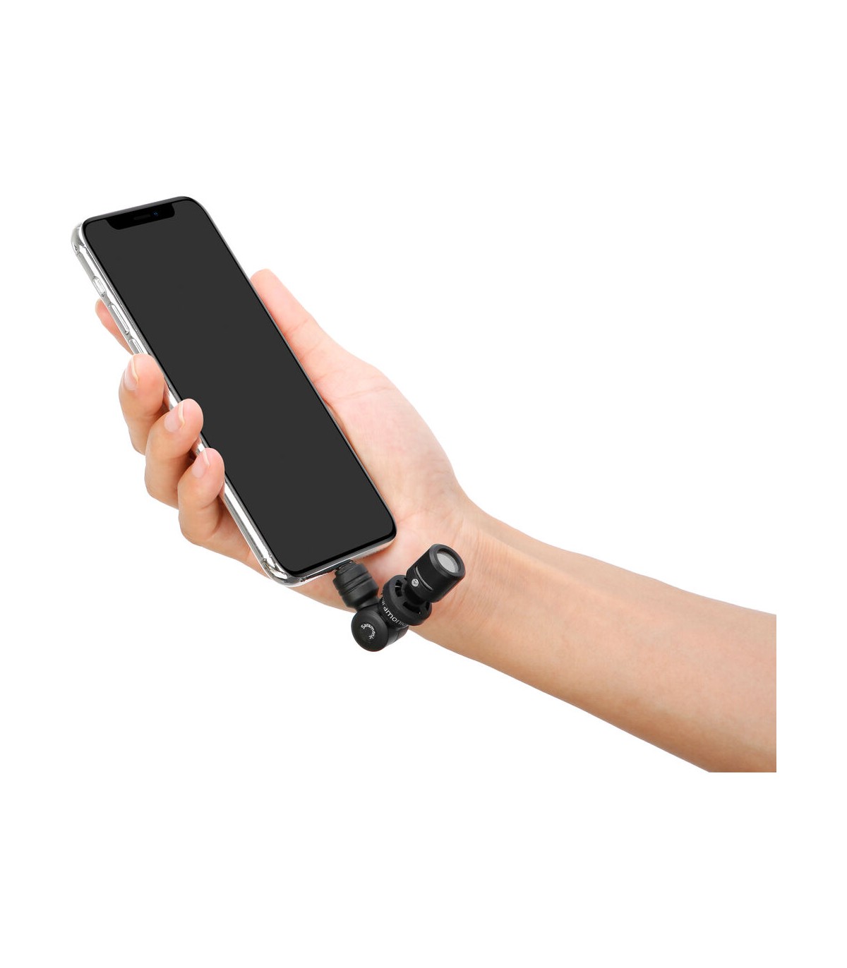 میکروفون موبایل Saramonic مدل Smartmic Di mini برای ضبط صدای با کیفیت بالا بر روی موبایل و تبلتهای اندرویدی یا لپتاپهای مجهز به درگاه USB Type-C طراحی و عرضه شده است. این میکروفون دارای کپسول کاندنسر با الگوی دریافت صدای تمامجهته است و به صورت مستقیم به دستگاه مورد نظر متصل میشود. در نتیجه دیگر نیازی به کابلهای دستوپاگیر نخواهد بود. بدنه این میکروفون ابعاد کوچکی دارد و وزن آن نیز بسیار سبک است. به علاوه قابلیت چرخش سری میکروفون نیز وجود دارد تا در صورت استفاده از دوربین سلفی یا دوربین اصلی دستگاه، بتوان سری میکروفون را به سمت منبع صدا تنظیم کرد.