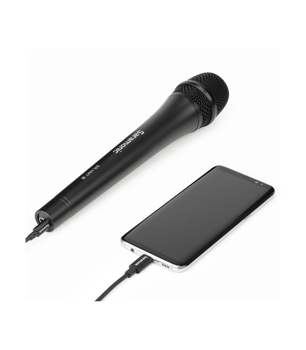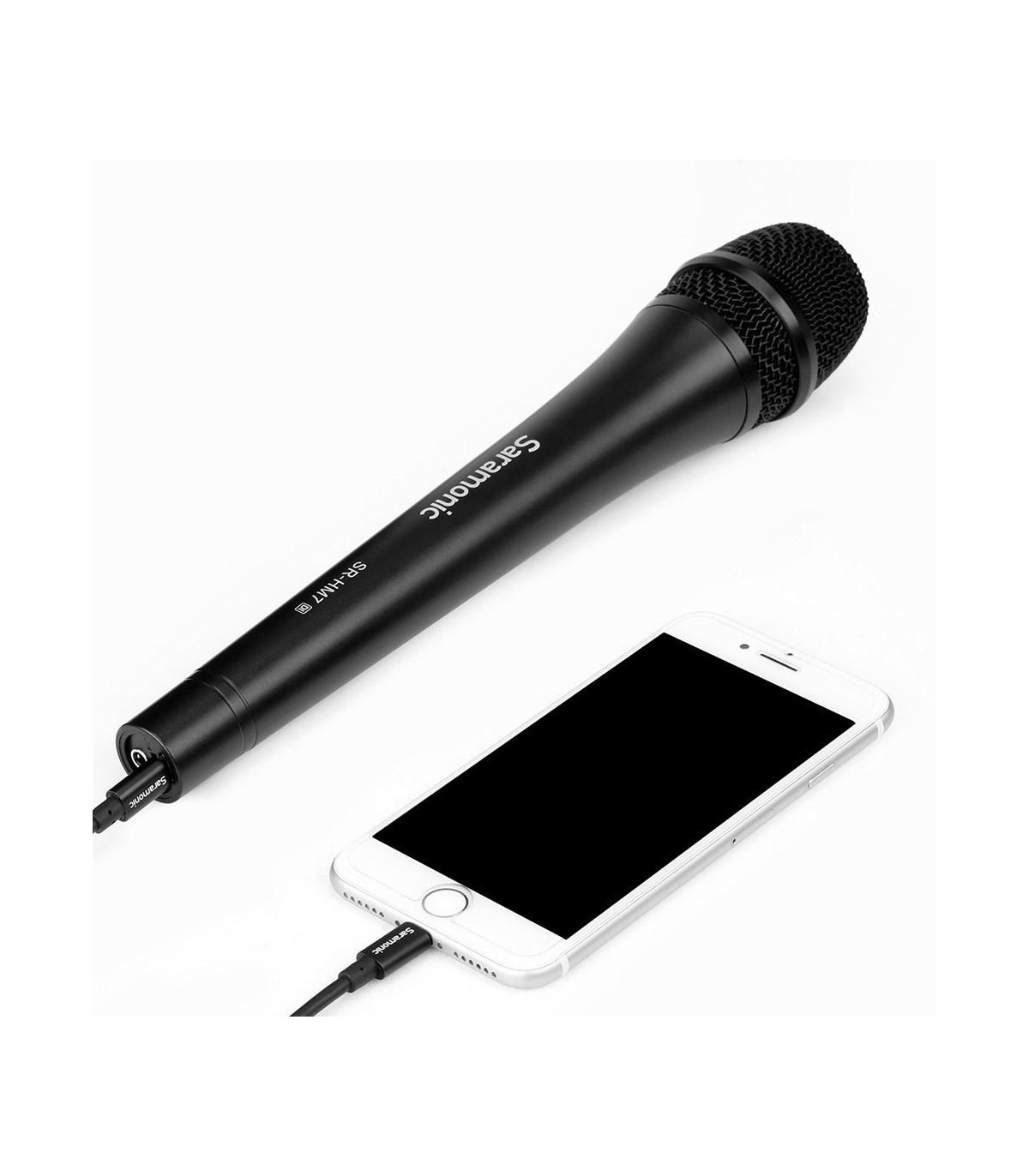 میکروفن دستی موبایل Saramonic مدل SR-HM7 Di برای ضبط صدای صحبت کردن افراد با کیفیت بسیار بالا بر روی کامپیوترهای ویندوزی و مک یا آیفون و آیپد استفاده میشود. ضبط پادکست و مصاحبه با این میکروفون کیفیت بسیار بالایی دارد. کپسول دینامیکی این میکروفون دارای الگوی قطبی کاردیوید است تا صداهای جانبی در خروجی محصول کاهش یابند. بازه پاسخدهی فرکانسی ۷۵ هرتز تا ۲۰ کیلوهرتز برای ضبط شفاف صدای صحبت کردن بسیار مناسب است. اتصال این میکروفون از طریق کابل USB Type-A یا کابل لایتنینگ به طیف وسیعی از دستگاهها انجام میشود.