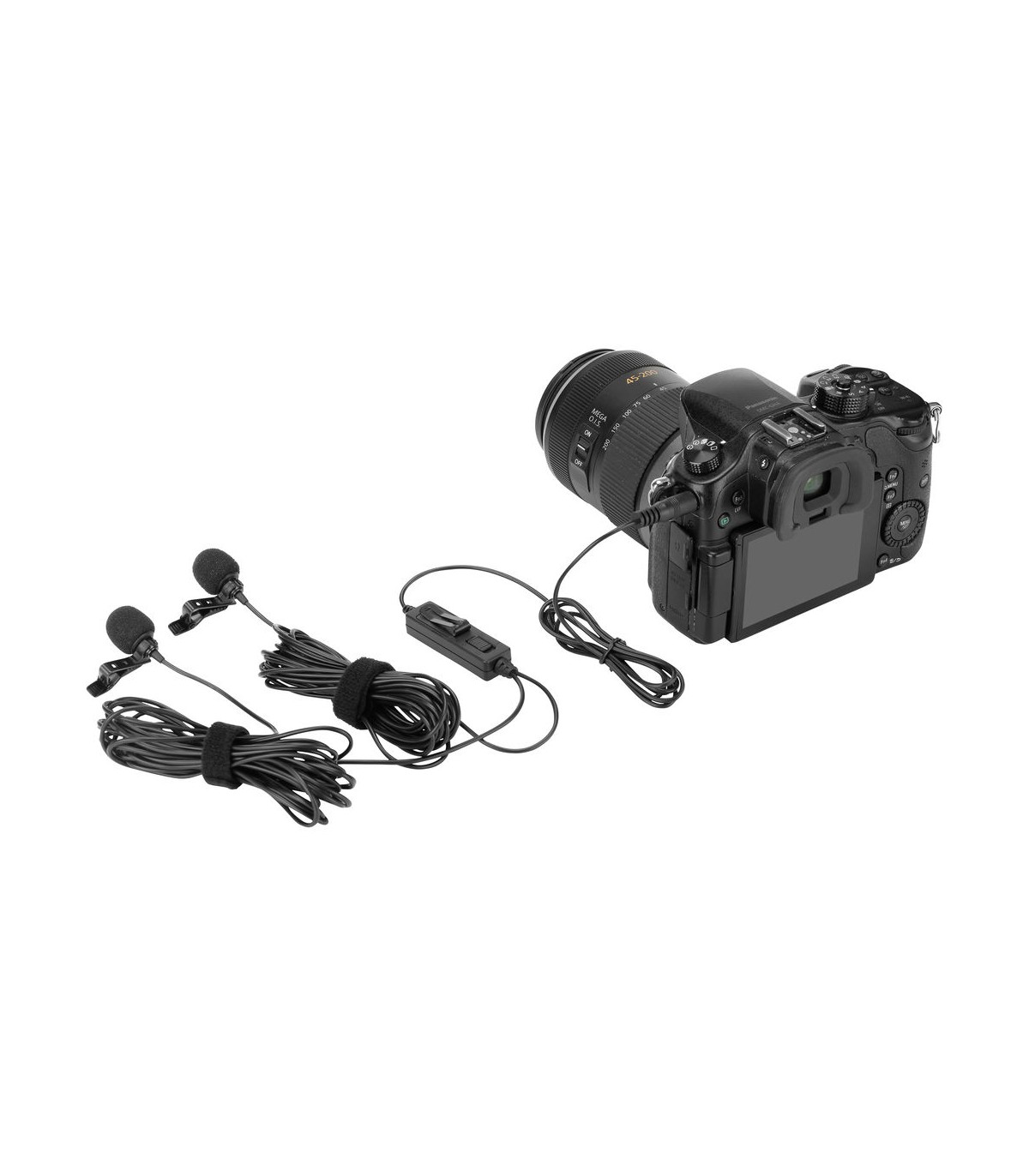 میکروفون یقهای دوبل Saramonic مدل LavMicro 2M یک راهکار اقتصادی برای ضبط آسان مصاحبههای دو نفره است. این محصول به همراه دو عدد گیره عرضه شده و هر دو میکروفون در نهایت توسط یک جک ۳.۵ میلیمتری به ورودی میکروفون دوربینهای بدون آینه، DSLR یا فیلمبرداری متصل میشوند. البته قابلیت اتصال این میکروفونها به انواع موبایلها و تبلتها نیز وجود دارد.