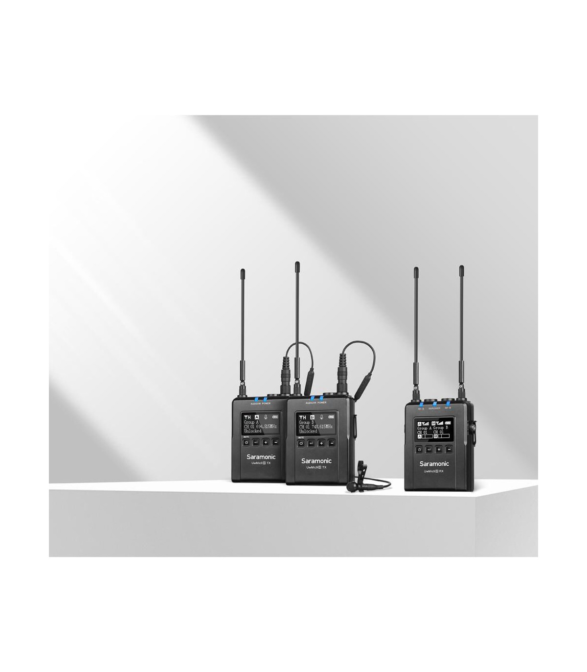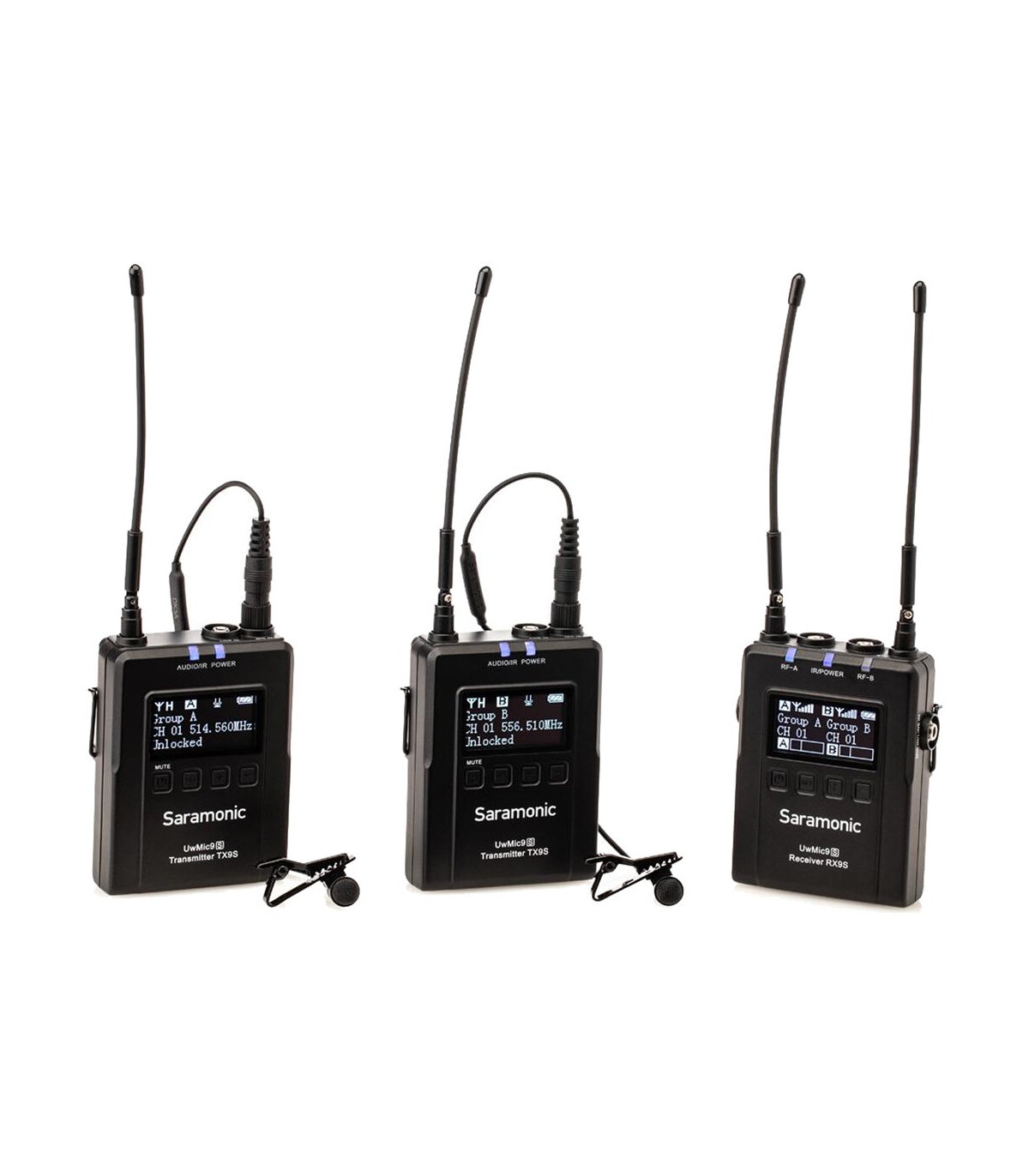 • از این گیرنده میتوان برای دریافت سیگنال از دو فرستنده به طور همزمان استفاده کرد. در نتیجه برای گسترش کیت میکروفون بی سیم Saramonic مدل UwMic9S KIT2 تنها نیاز به تهیه یک فرستنده TX9S اضافه است.