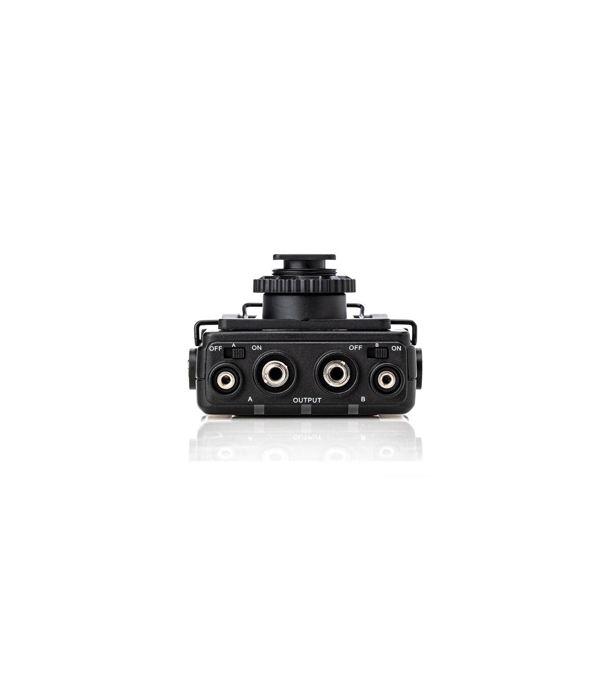 گیرنده دو کاناله کیت میکروفون بی سیم Saramonic مدل UwMic9S KIT2 بر روی دوربین مانت میشود و دو خروجی صدای ۳.۵ میلیمتری دارد. مجموعهای از کابلهای مرتبط برای اتصال این گیرنده به انواع دوربینهای بدون آینه، DSLR، فیلمبرداری حرفهای، رکوردرهای صدا، میکسرها و اینترفیسهای صوتی با ورودی ۳.۵ میلیمتری یا XLR در بستهبندی این محصول به چشم میخورد. یک ورودی صدای دیگر نیز برای این گیرنده در نظر گرفته شده که امکان اتصال میکروفون سیمی یا میکسر را به آن فراهم میکند. خروجی ۳.۵ میلیمتری هدفون نیز برای مانیتورینگ مستقیم صدای دریافت شده توسط میکروفونها به کار میرود تا همواره بتوان از کیفیت و بلندی آن اطمینان حاصل کرد.