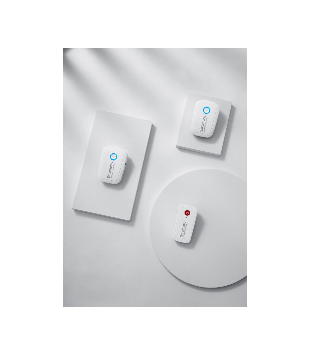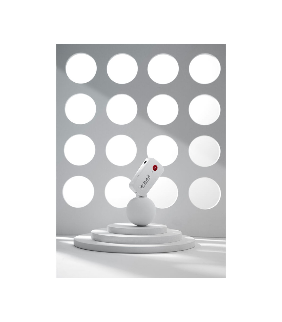 کیت میکروفن بی سیم Saramonic مدل Blink 500 B1W دروازه ورود آسان به دنیای بیسیم ضبط صدا است. ابعاد کوچک و استفاده بسیار ساده این محصول در کنار قیمت اقتصادی آن، این میکروفون را به راهکاری کارامد برای ضبط صدای یک نفر با استفاده از دوربین عکاسی، فیلمبرداری یا موبایل تبدیل کرده است. بدنه این کیت به رنگ سفید است و برای استفاده با لباسهای سفیدرنگ بسیار مناسب است. برای نمونه میتوان از این کیت برای صدابرداری در مراسم عروسی استفاده کرد، یعنی جایی که سوژه اصلی لباس سفید بر تن دارد.