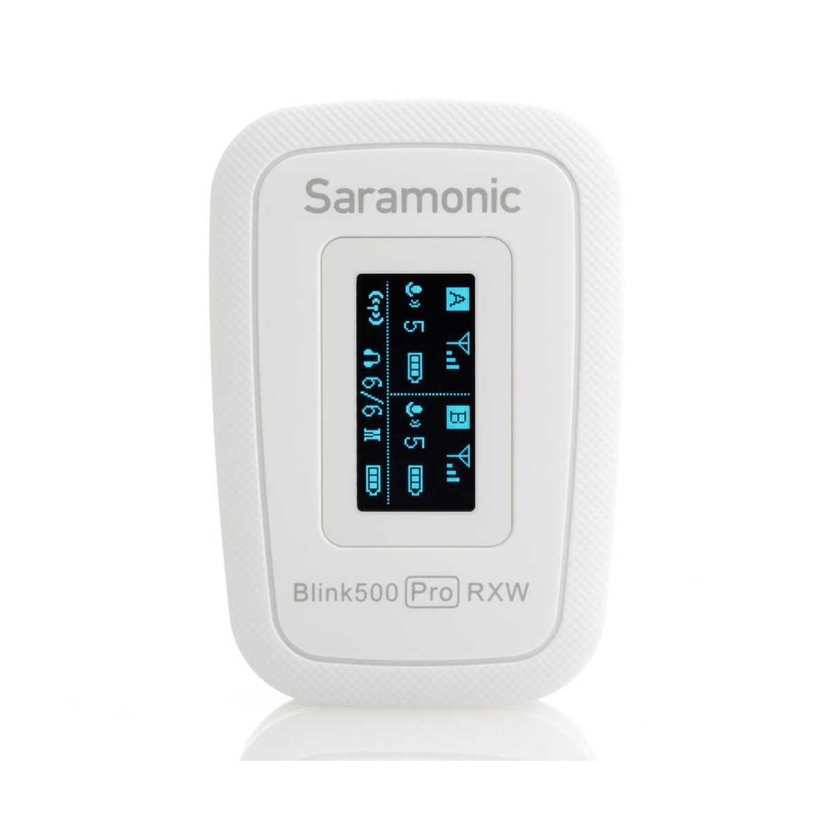 • گیرنده کیت میکروفن بی سیم Saramonic مدل Blink 500 Pro B1 از نوع دو کاناله است و امکان دریافت همزمان صدا از دو فرستنده Blink 500 Pro TX را دارد. برای گسترش سیستم ضبط صدای بیسیم نیز میتوان از ۱۸ کیت میکروفون یعنی ۳۶ میکروفون به طور همزمان در یک فضا استفاده کرد.